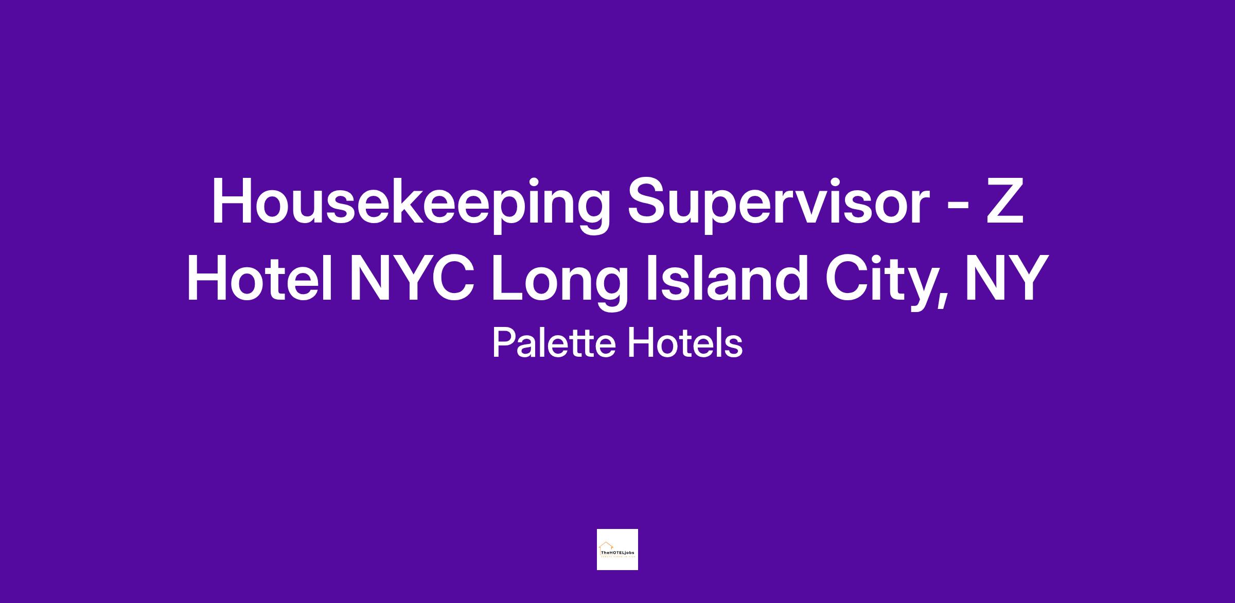 Position: Housekeeping Supervisor - Z Hotel NYC Long Island City, NY