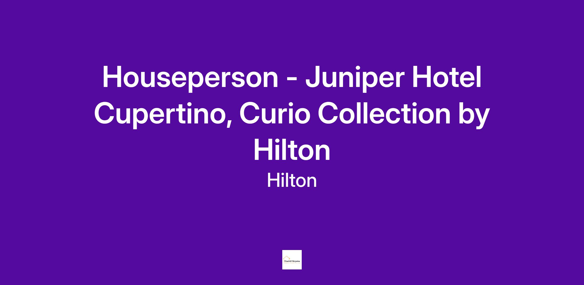 The Juniper Hotel Cupertino is seeking a Houseperson to join our housekeeping team. Recognized as the ultimate boutique hotel in Cupertino, we feature elegant accommodations and exceptional indoor and outdoor dining experiences.