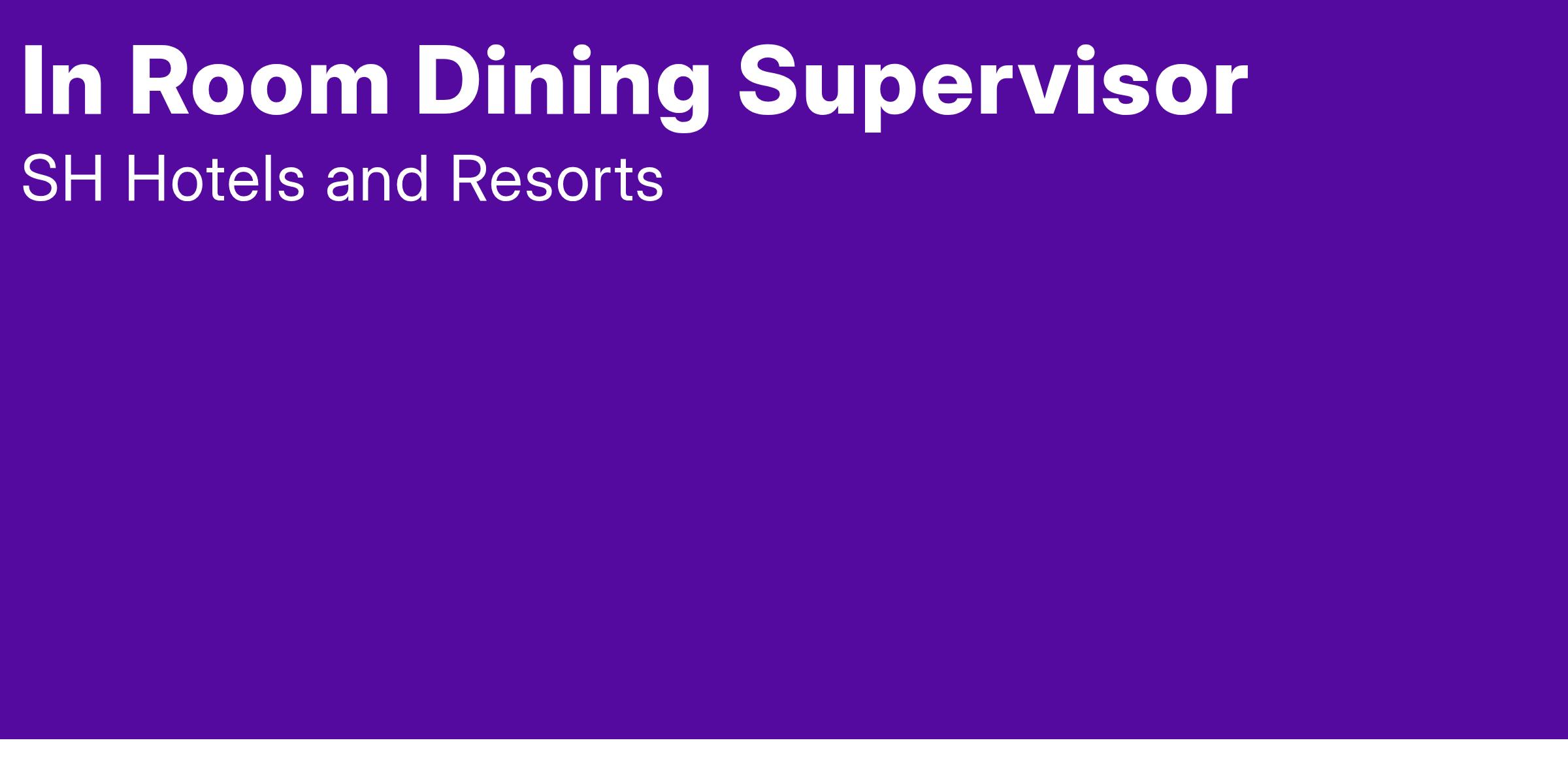 We’re currently seeking an In-Room Dining Supervisor who enjoys keeping our guests happy and sated, to participate in all tasks related to in-room dining setup and breakdown, and fulfill any other guest requests with genuine enthusiasm, warmth and efficiency.