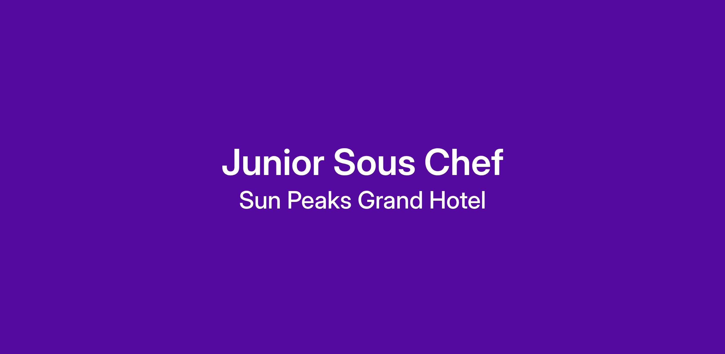 Do you love food and everything about it. We are recruiting a Jr Sous Chef to join our fast-paced culinary team. Our three large kitchens offer complete food and beverage services to our local, hotel, and business guests. We are looking for someone who shows dedication to a creative and positive work environment and fosters a collaborative approach with all F&B team members. The Jr Sous Chef works closely with the Sous Chef related to food production, health and safety, sanitation, teaching techniques and food execution while providing direct support to Culinary Leadership. This role provides every opportunity to continue developing a career in the art of culinary, opening opportunities for advancement internally and externally throughout the Sun Peaks Grand and Sun Peaks Resort. If this sounds like you, start your application to come and work, live and play where you belong.