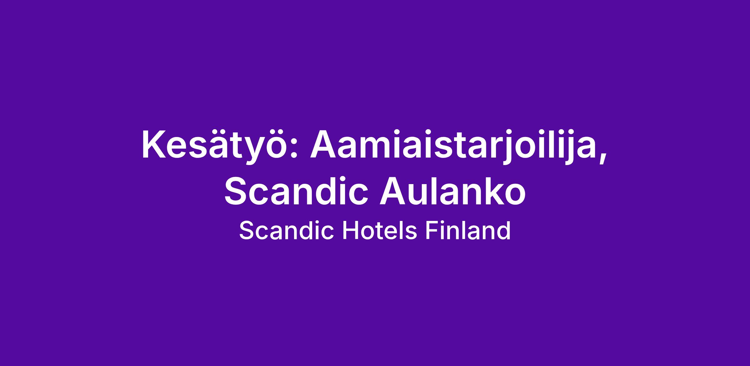 Monipuolisen työympäristön suuressa hotelliketjussa, jossa löytyy lukemattomia mahdollisuuksia kehittyä ja oppia uutta. Saat myös Scandicin henkilökuntaedut käyttöösi jo kuukauden työsuhteen jälkeen. Etuihimme kuuluu ravintoloiden ruoka- ja juoma-alennuksia, hotellien majoitusedut, ePassi-etuja, työterveyshuolto ja useiden yhteistyökumppaniemme tarjoamia alennuksia.