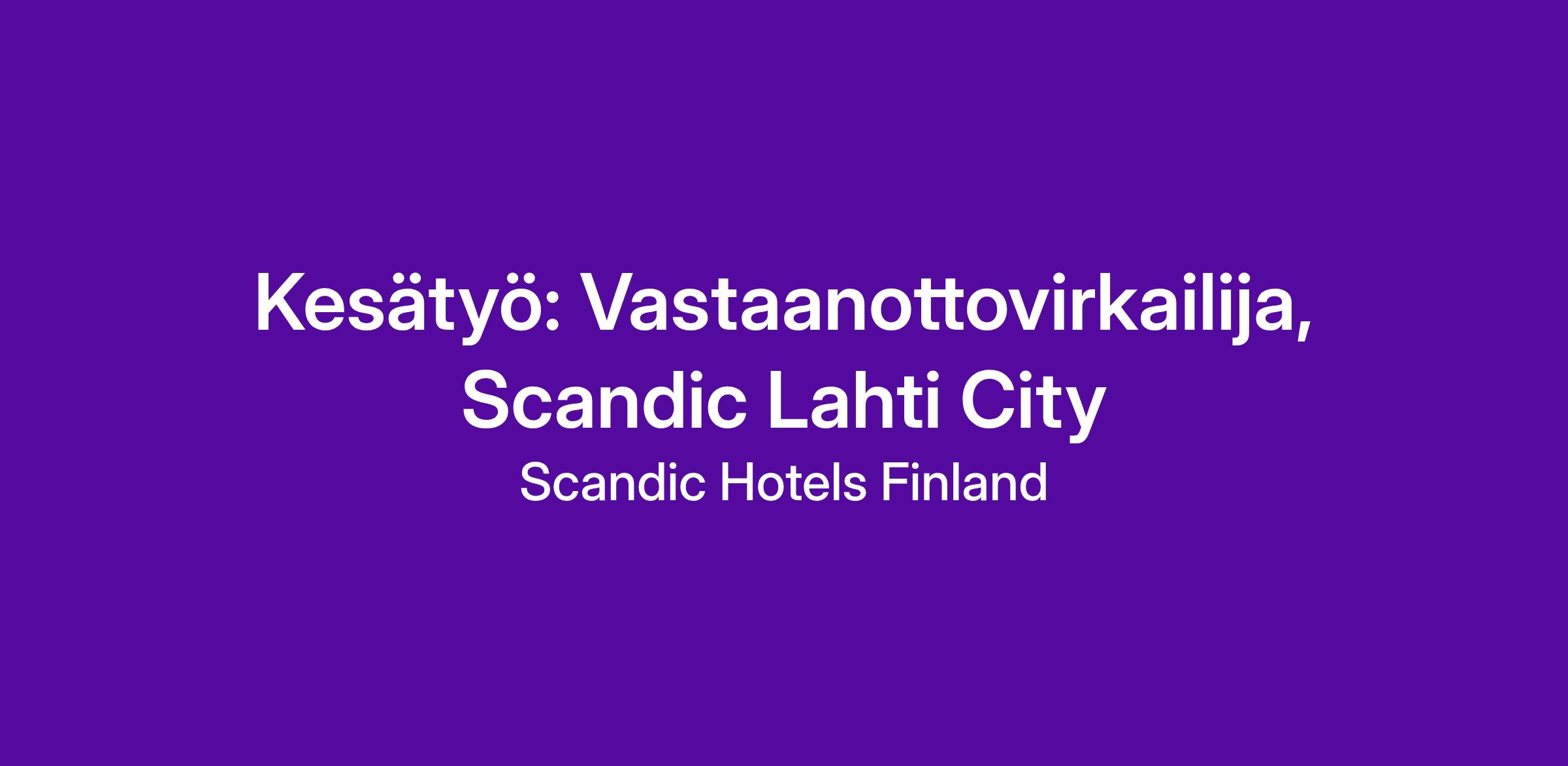 Monipuolisen työympäristön suuressa hotelliketjussa, jossa löytyy lukemattomia mahdollisuuksia kehittyä ja oppia uutta. Saat myös Scandicin henkilökuntaedut käyttöösi jo kuukauden työsuhteen jälkeen. Etuihimme kuuluu ravintoloiden ruoka- ja juoma-alennuksia, hotellien majoitusedut, ePassi-etuja, työterveyshuolto ja useiden yhteistyökumppaniemme tarjoamia alennuksia.