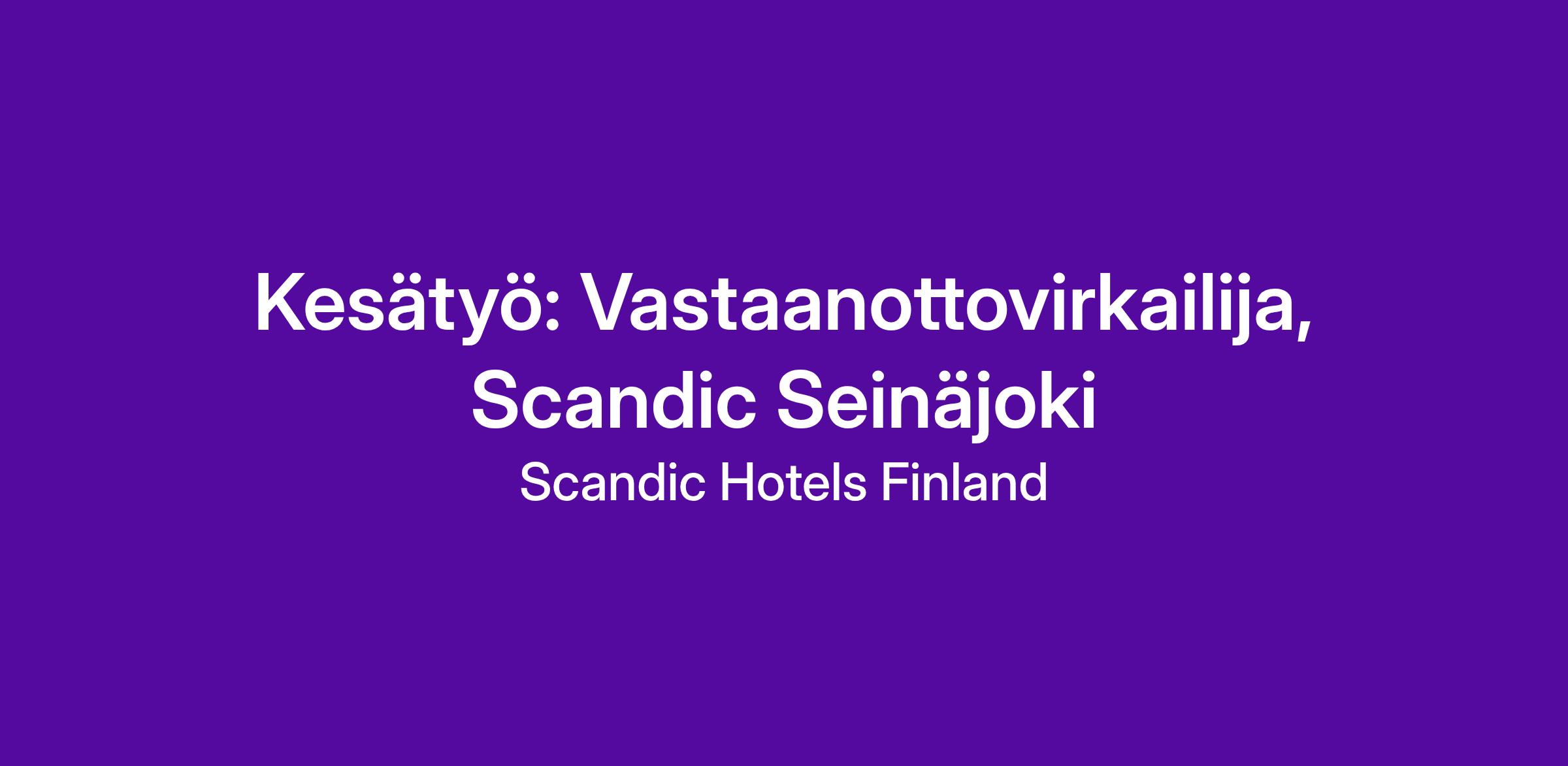 Monipuolisen työympäristön suuressa hotelliketjussa, jossa löytyy lukemattomia mahdollisuuksia kehittyä ja oppia uutta. Saat myös Scandicin henkilökuntaedut käyttöösi jo kuukauden työsuhteen jälkeen. Etuihimme kuuluu ravintoloiden ruoka- ja juoma-alennuksia, hotellien majoitusedut, ePassi-etuja, työterveyshuolto ja useiden yhteistyökumppaniemme tarjoamia alennuksia.