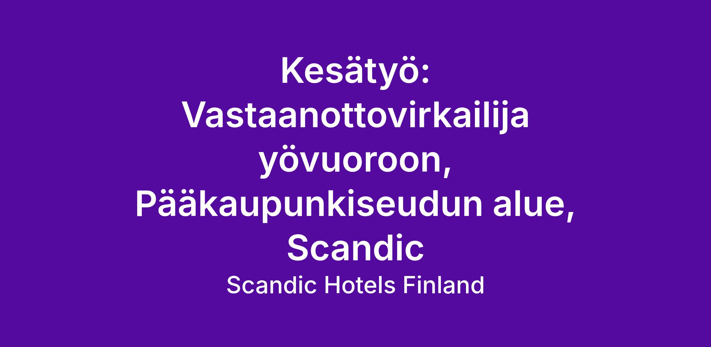Haemme pääkaupunkiseudun Scandic, Hilton, Crowne Plaza, Holiday Inn ja Indigo hotelleihimme vastaanottovirkailjoita yövuoroon kesäkaudelle 2026.