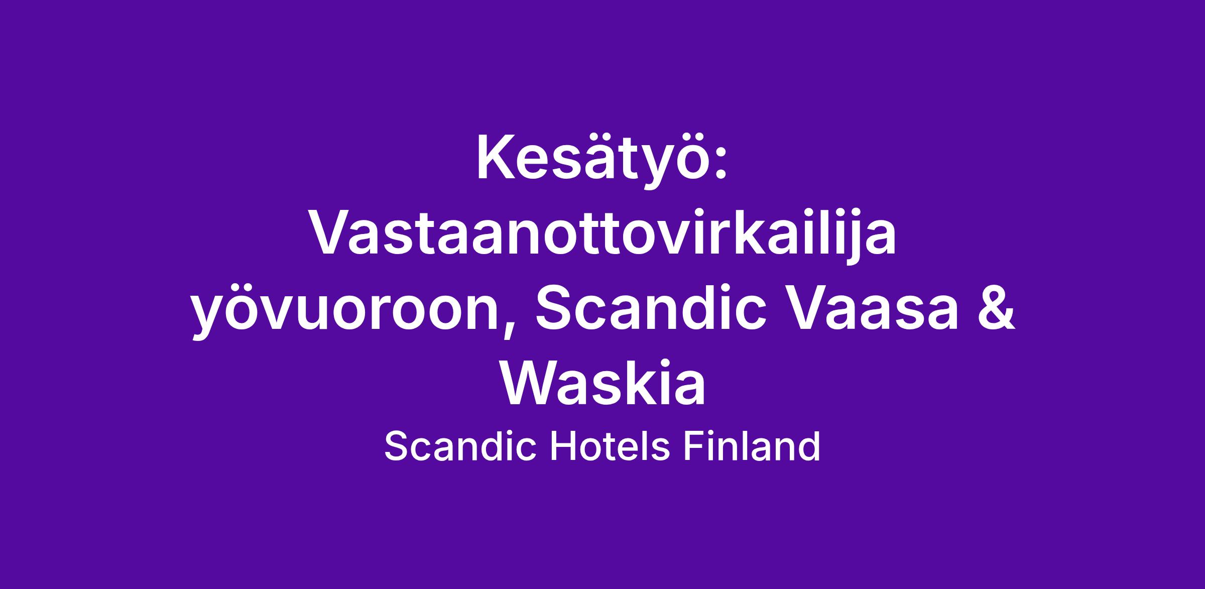 Haemme vastaanottovirkailjoita yövuoroon kesäkaudelle 2026 Scandic Vaasan & Waskian yhteiseen tiimiin.
