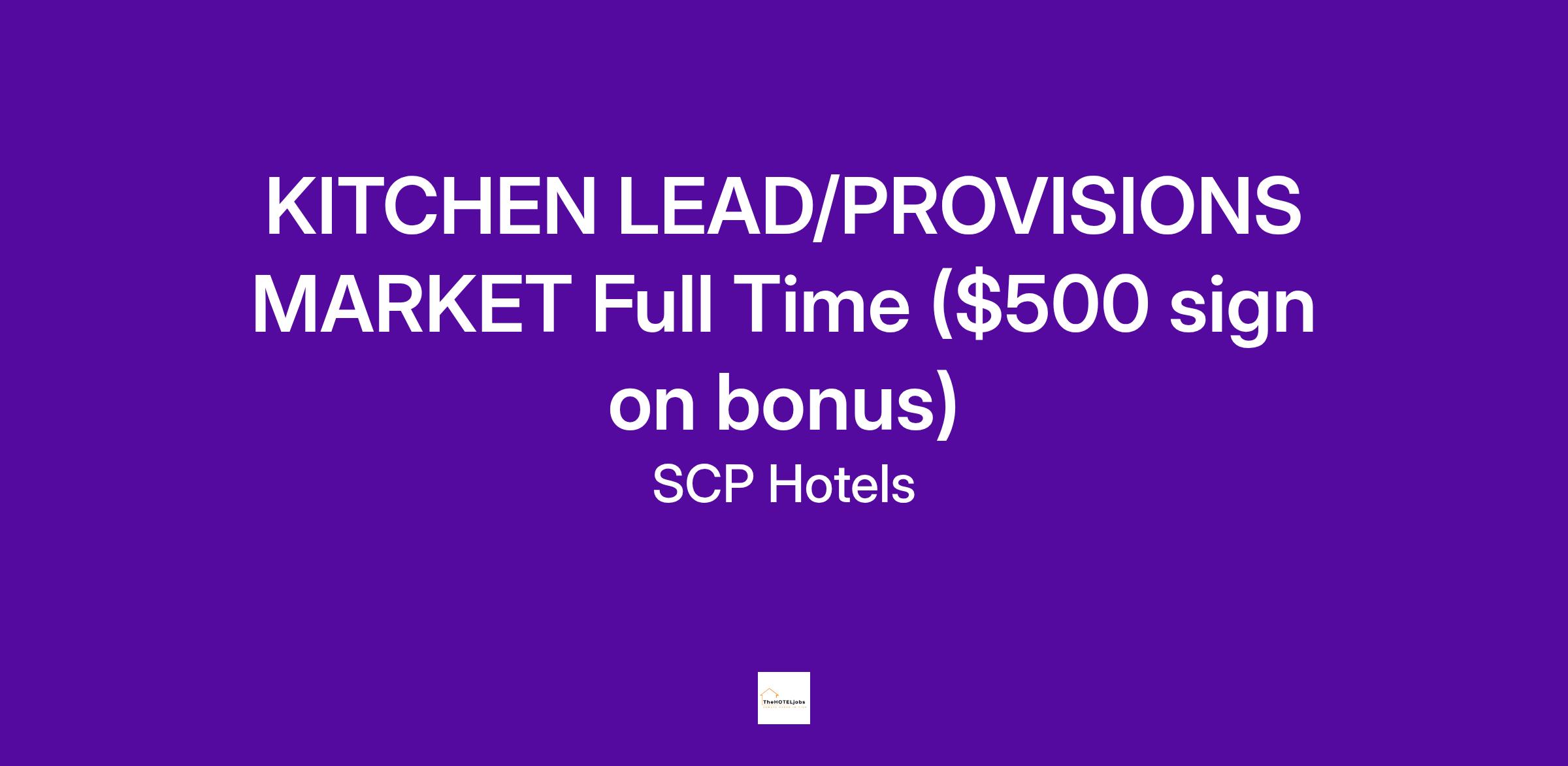KITCHEN LEAD/PROVISIONS MARKET - $23 to $25/hourly ($500 sign on bonus)
