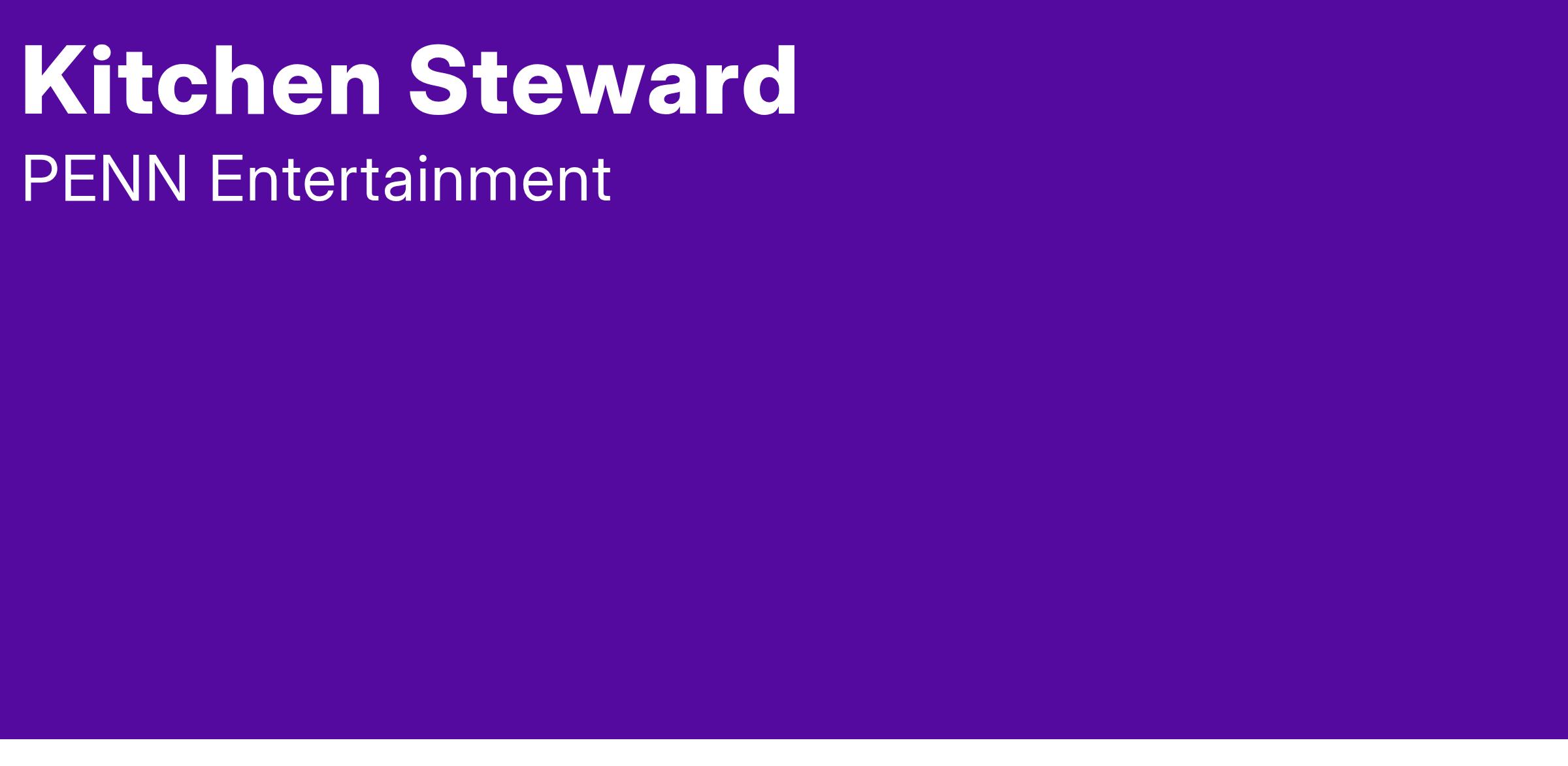 Completion of high school education or equivalent. Six (6) months of experience in stewarding, kitchen maintenance, kitchen operations or similar. Knowledge of food and beverage service operation is preferred.