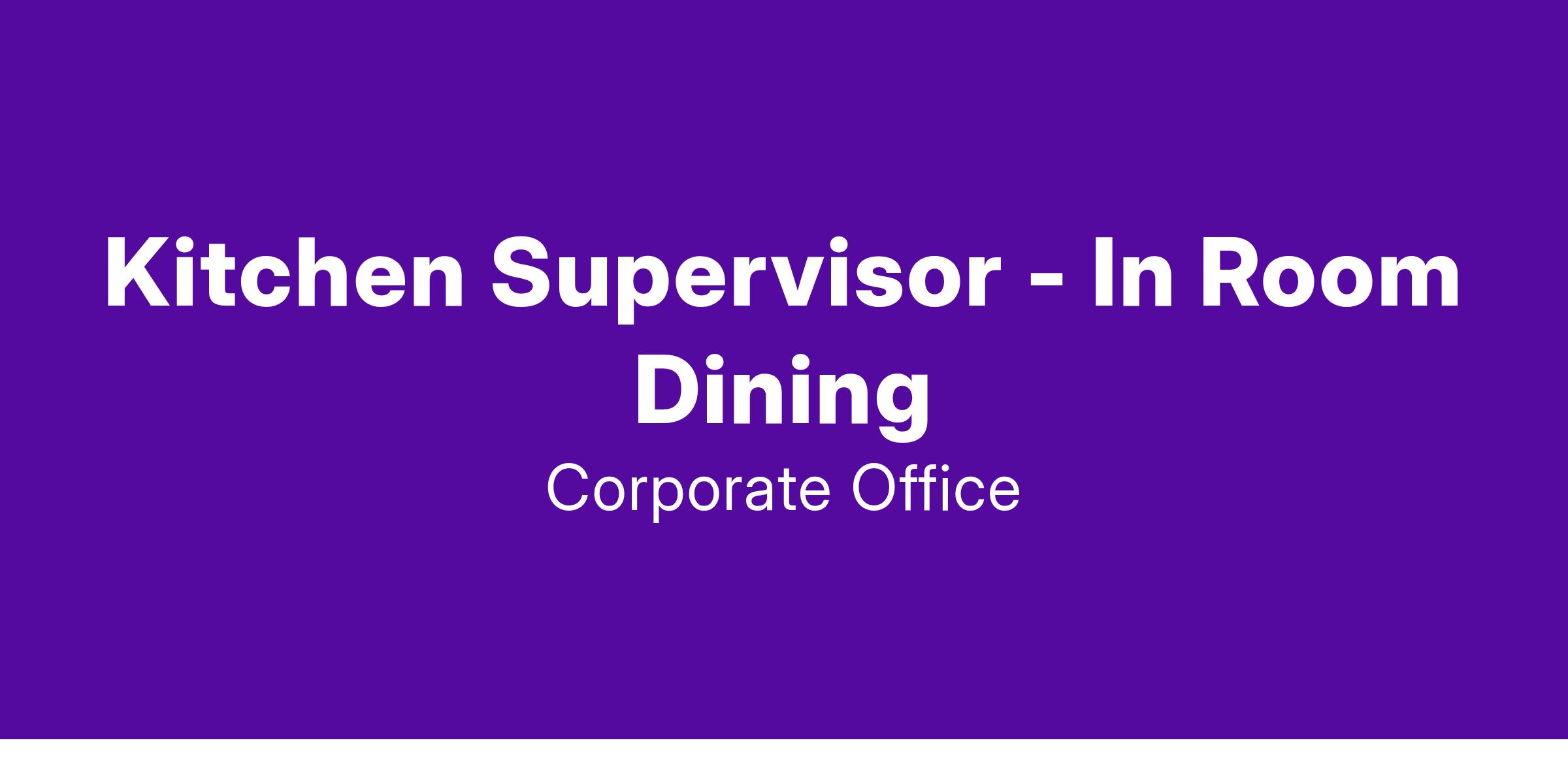 The In Room Dining Kitchen Supervisor is responsible for supervising and coordinating the overall operation of the culinary team within In Room Dining.