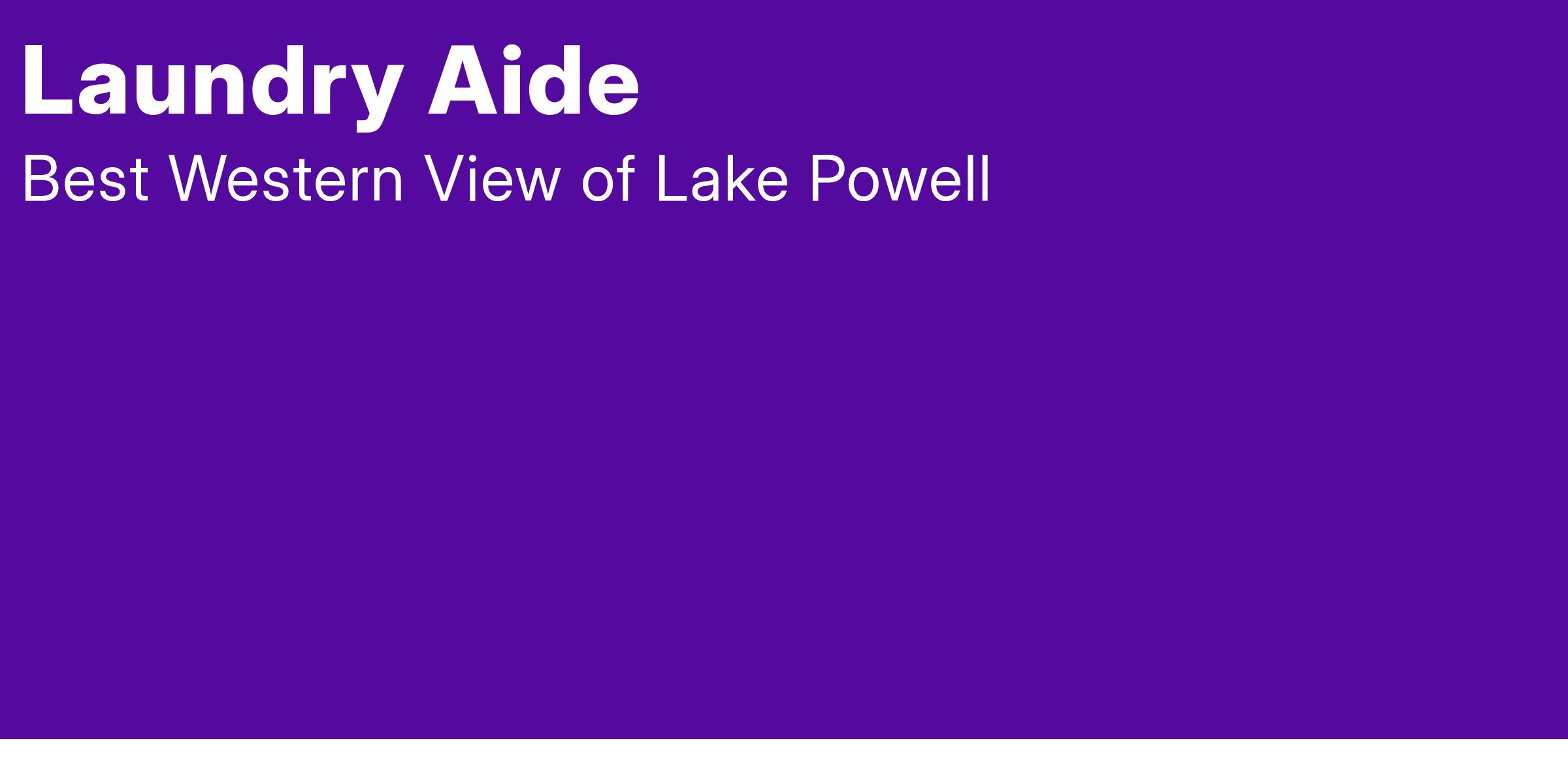Best Western View of Lake Powell is seeking a full-time Laundry Aide to support our commitment to providing guests with a clean and comfortable stay. This role plays a vital part in maintaining the high standards of our hotel by ensuring all linens are properly cleaned, organized, and readily available for use. If you take pride in attention to detail and efficiency, we invite you to join our hospitality team in a professional and welcoming environment. You will enjoy: