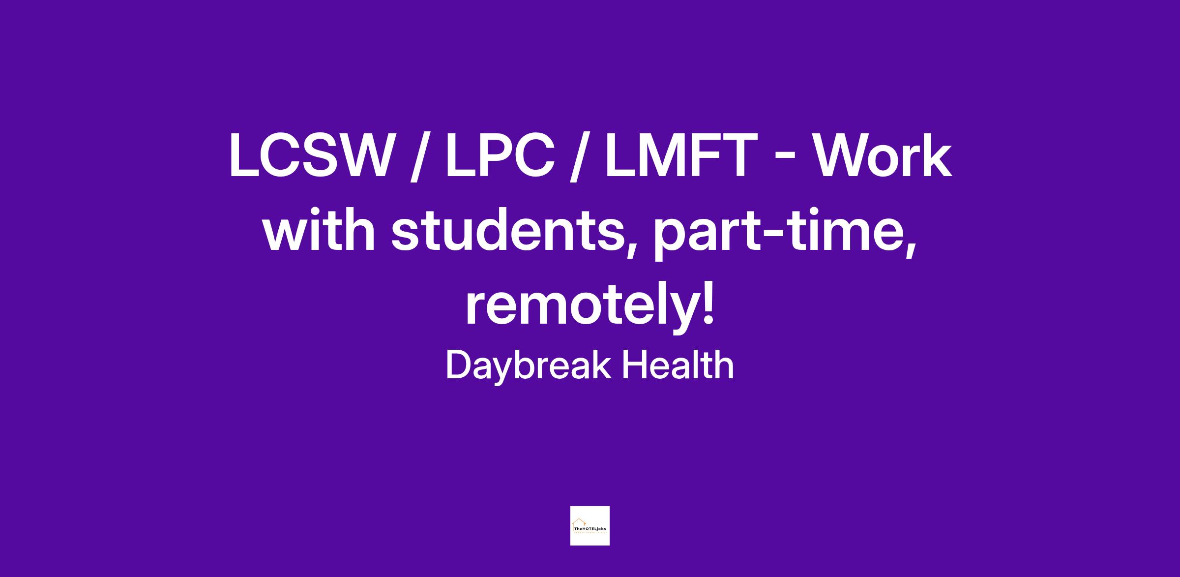 Equal Employment Opportunity: At Daybreak Health, we embrace diversity and are committed to creating an inclusive work environment. We encourage individuals from all backgrounds to apply, including those from diverse communities, such as race, ethnicity, gender identity, sexual orientation, ability, age, religion, and socioeconomic background.