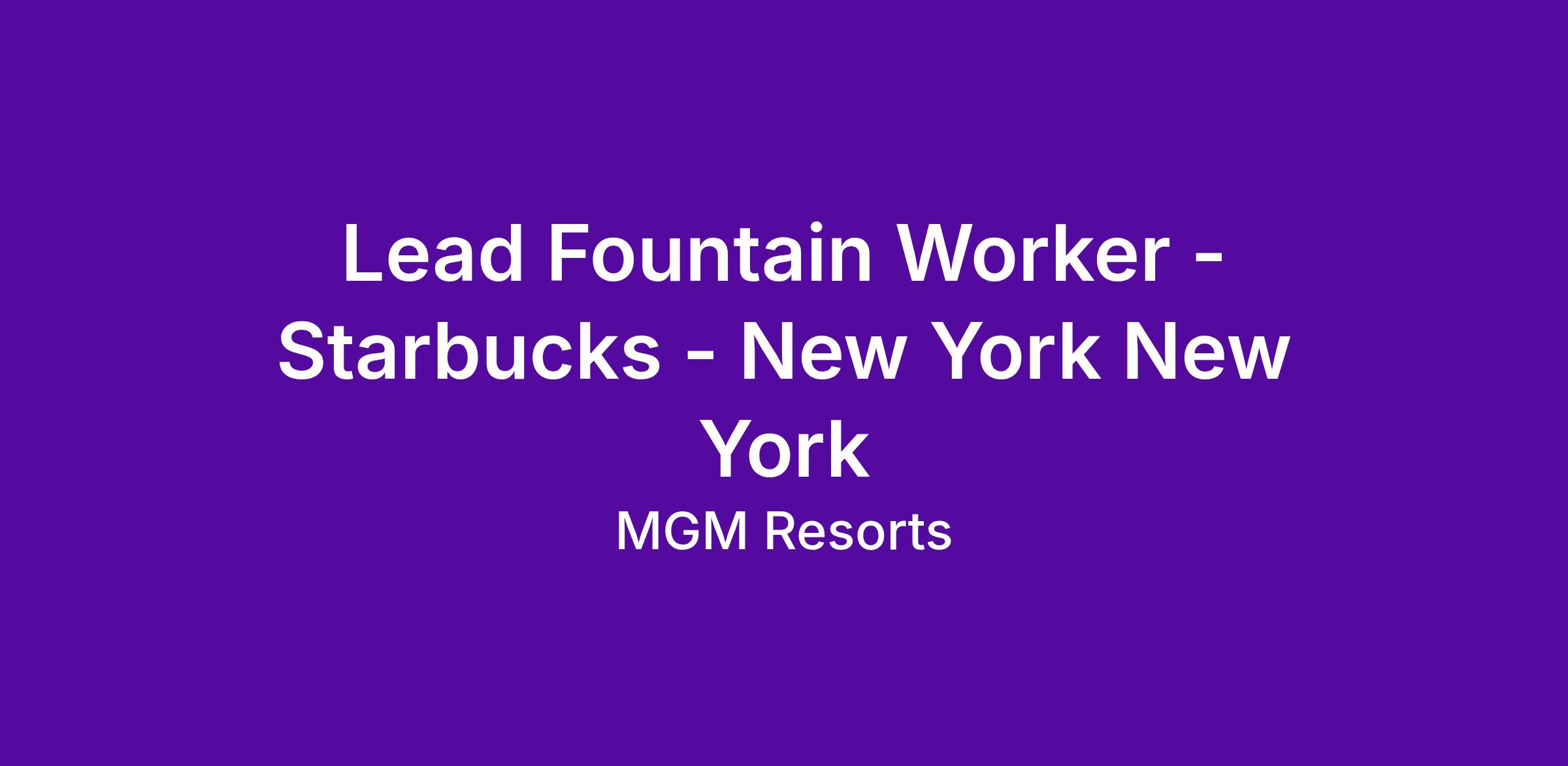 As a Lead Fountain Worker for Starbucks at New York-New York, you’ll take the lead in delivering the familiar, energizing Starbucks experience guests know and love—right in the heart of the resort. You’ll maintain a clean, welcoming café environment while guiding and supporting Fountain Worker I and II team members to ensure smooth daily operations. With your warm smile, attentive service, and leadership presence, you’ll connect with guests, anticipate their needs, and create uplifting WOW moments they’ll remember long after their visit.