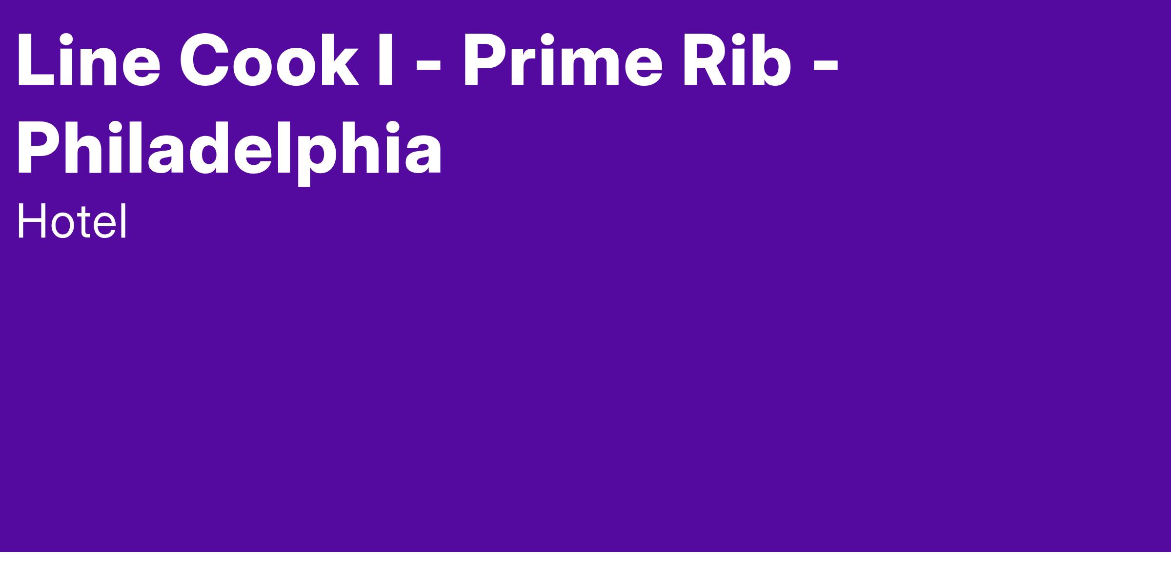 Line Cook I - Prime Rib - Philadelphia