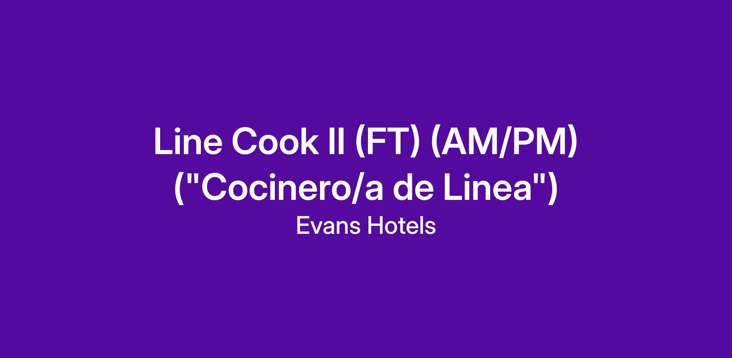 The Line Cook II ("Cocinero/a de Linea") prepares all menu items in specific station with the utmost of care and respect for ingredients, technique and fellow associates. Sets the example for all staff as to the pride and professionalism required to perform in a culinary environment of this caliber.