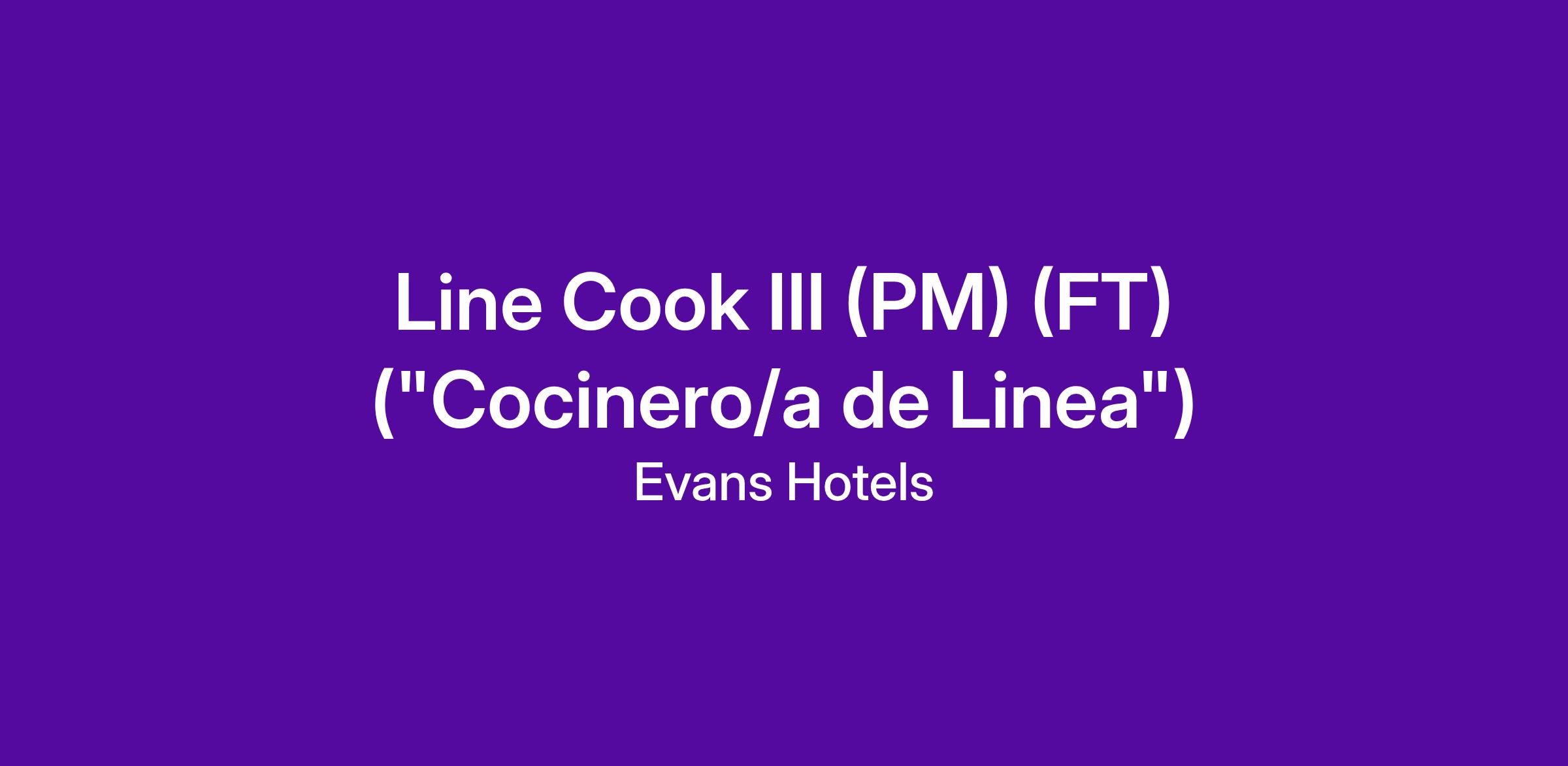 The Line Cook III ("Cocinero/a de Linea") prepares all menu items in specific station with the utmost of care and respect for ingredients, technique and fellow associates. Sets the example for all staff as to the pride and professionalism required to perform in a culinary environment of this caliber.