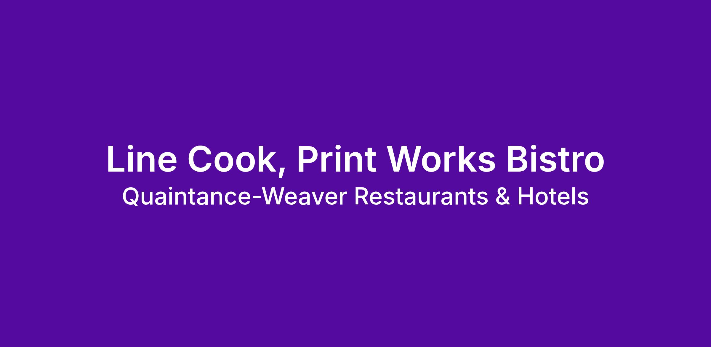 Print Works Bistro is looking for friendly and energetic Line Cooks to join their team of enthusiastic restaurant professionals who provide outstanding experiences to the guests they serve in a fast-paced environment. To deliver the type of outstanding experience we provide our guests, we need remarkable individuals who are committed to making a difference.