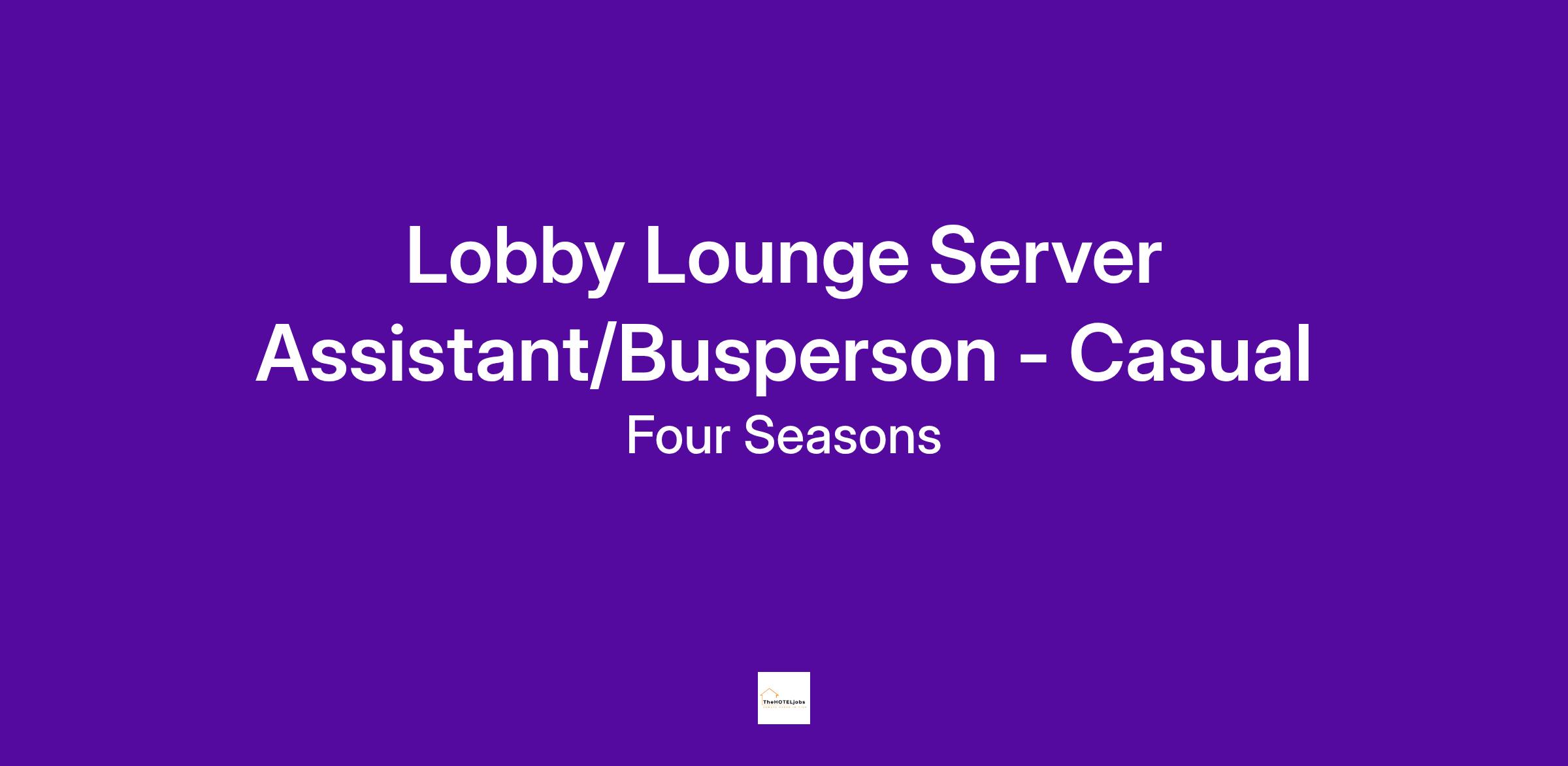 We are looking for a Server Assistant who is passionate in providing only the highest levels of customer service. This position reports to our Lobby Lounge Management Team.