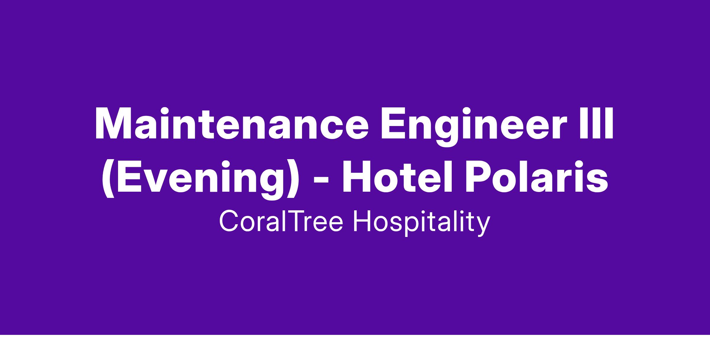 Are you ready to help shape the future of travel and hospitality at the new Hotel Polaris at the U.S. Air Force Academy? Hotel Polaris is seeking an exceptional Hotel Maintenance Engineer III to join our team and play a vital role in shaping the success of Hotel Polaris, an instant icon on the hospitality landscape of Colorado Springs. Your efforts significantly influence the unique and distinctive experiences we seek to deliver to our guests and team members alike. We're looking for someone who wants to be a part of something bigger and shares our passion for creating unforgettable guest experiences, nurturing a vibrant company culture, and building strong connections with our communities.