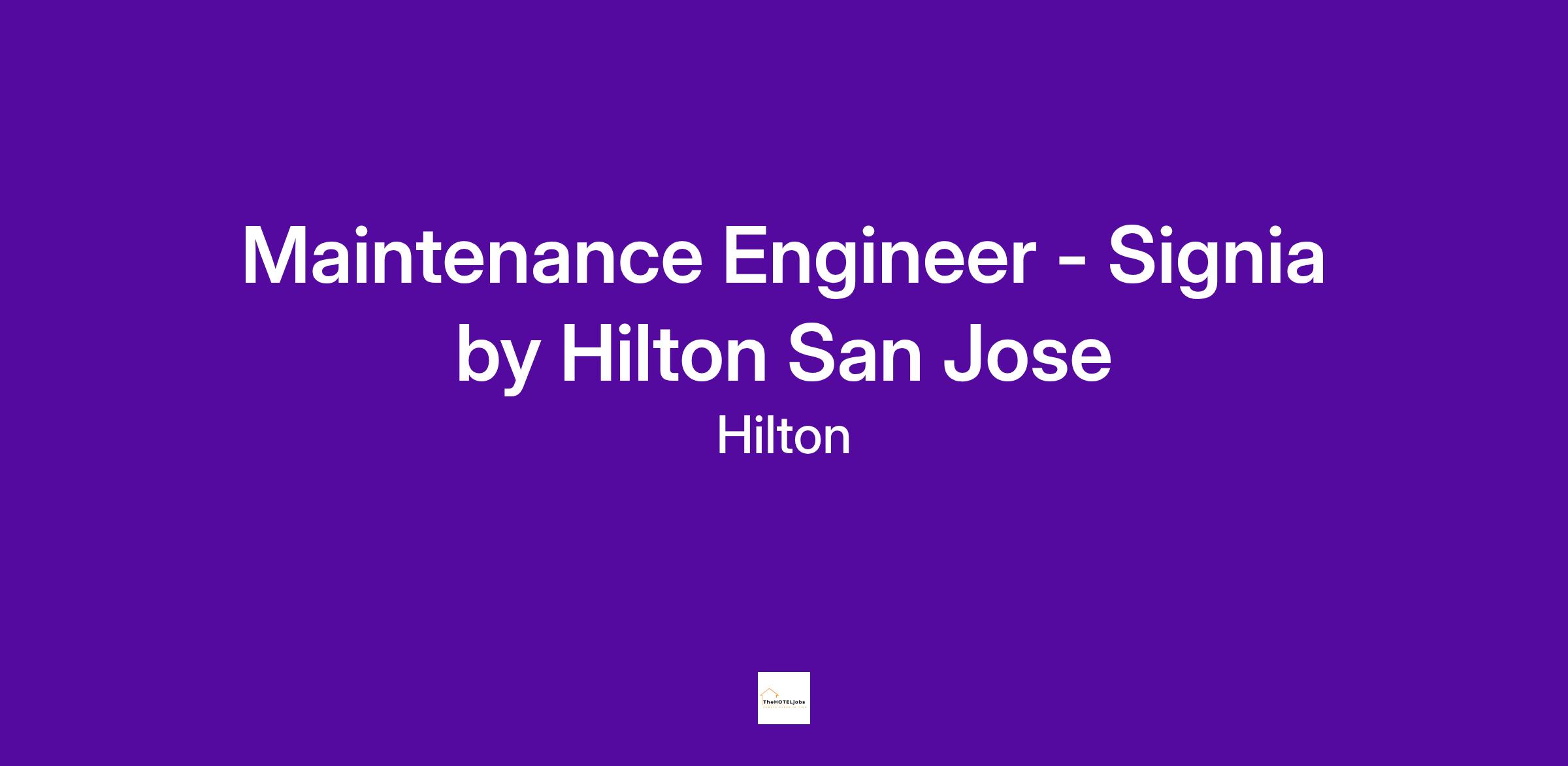 Come join our team Signia by Hilton San Jose in the capital of Silicon Valley as our Maintenance Engineer. We are across the street from Plaza de César Chávez Park and within walking distance of the San Jose Convention Center. Our hotel has 541 rooms, 14 meeting rooms and 55,000 square feet of event space.