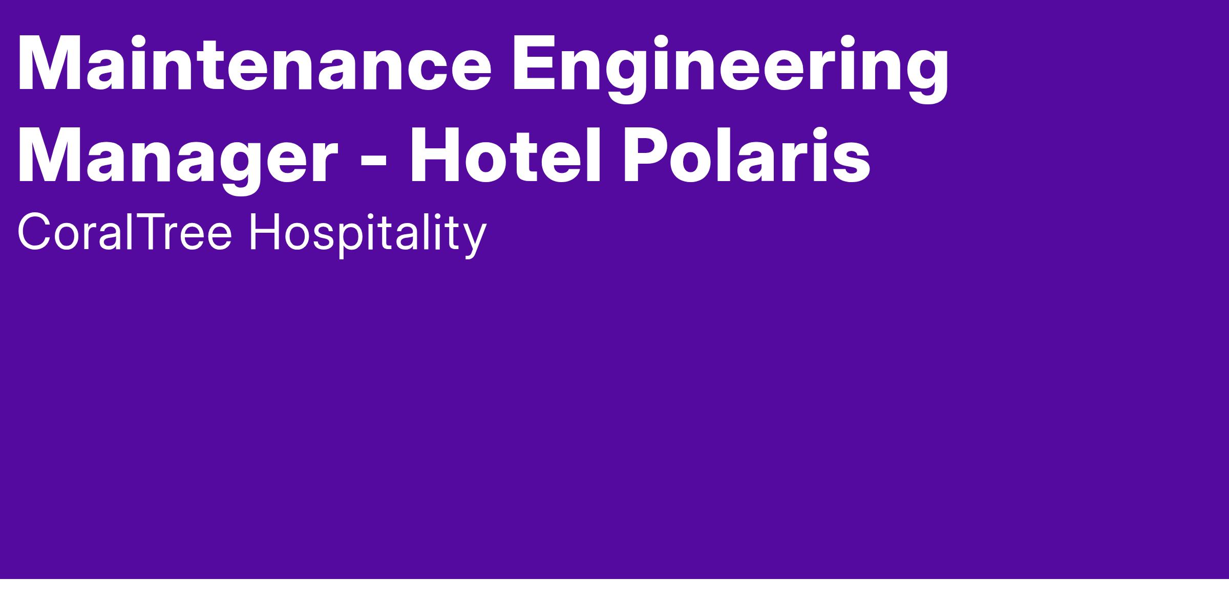 Are you ready to help shape the future of travel and hospitality at the new Hotel Polaris at the U.S. Air Force Academy? Hotel Polaris is seeking an exceptional Maintenance Engineering Manager to join our team and play a vital role in shaping the success of Hotel Polaris, an instant icon on the hospitality landscape of Colorado Springs. Your efforts significantly influence the unique and distinctive experiences we seek to deliver to our guests and team members alike. We're looking for someone who wants to be a part of something bigger and shares our passion for creating unforgettable guest experiences, nurturing a vibrant company culture, and building strong connections with our communities.