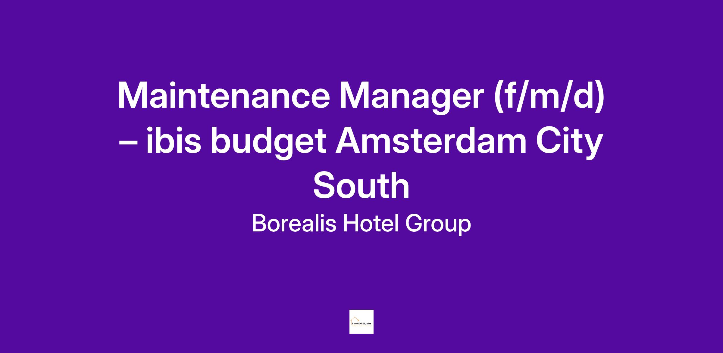 At Borealis Hotel Group are looking for a Maintenance Manager(f/m/d) for the ibis budget Amsterdam City South.