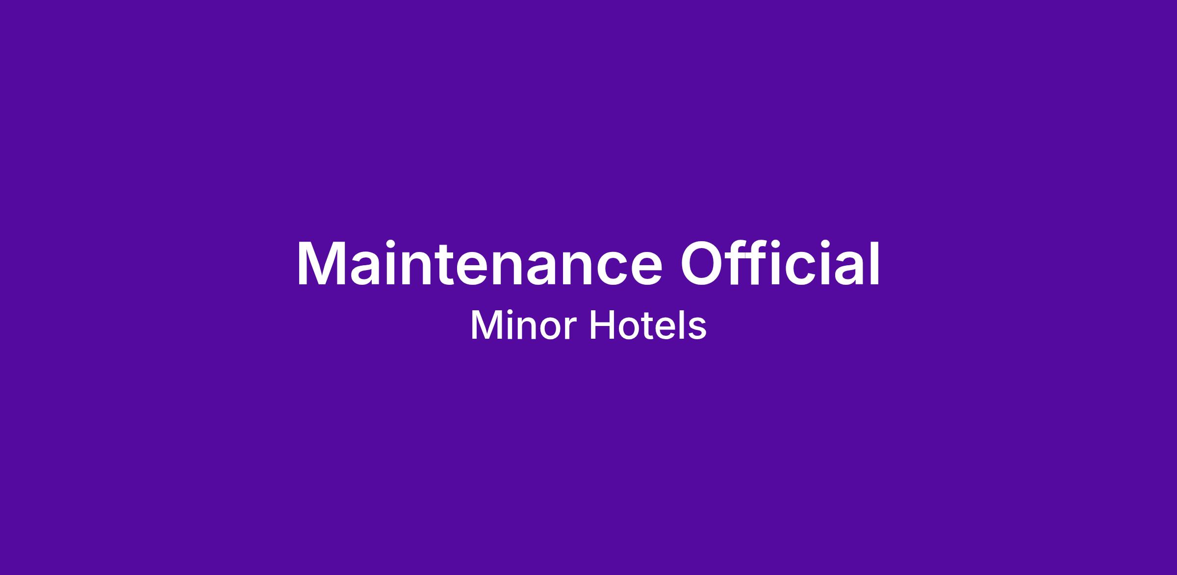 As Maintenance Official, you will assist the Maintenance Manager on his/her day to day activities.