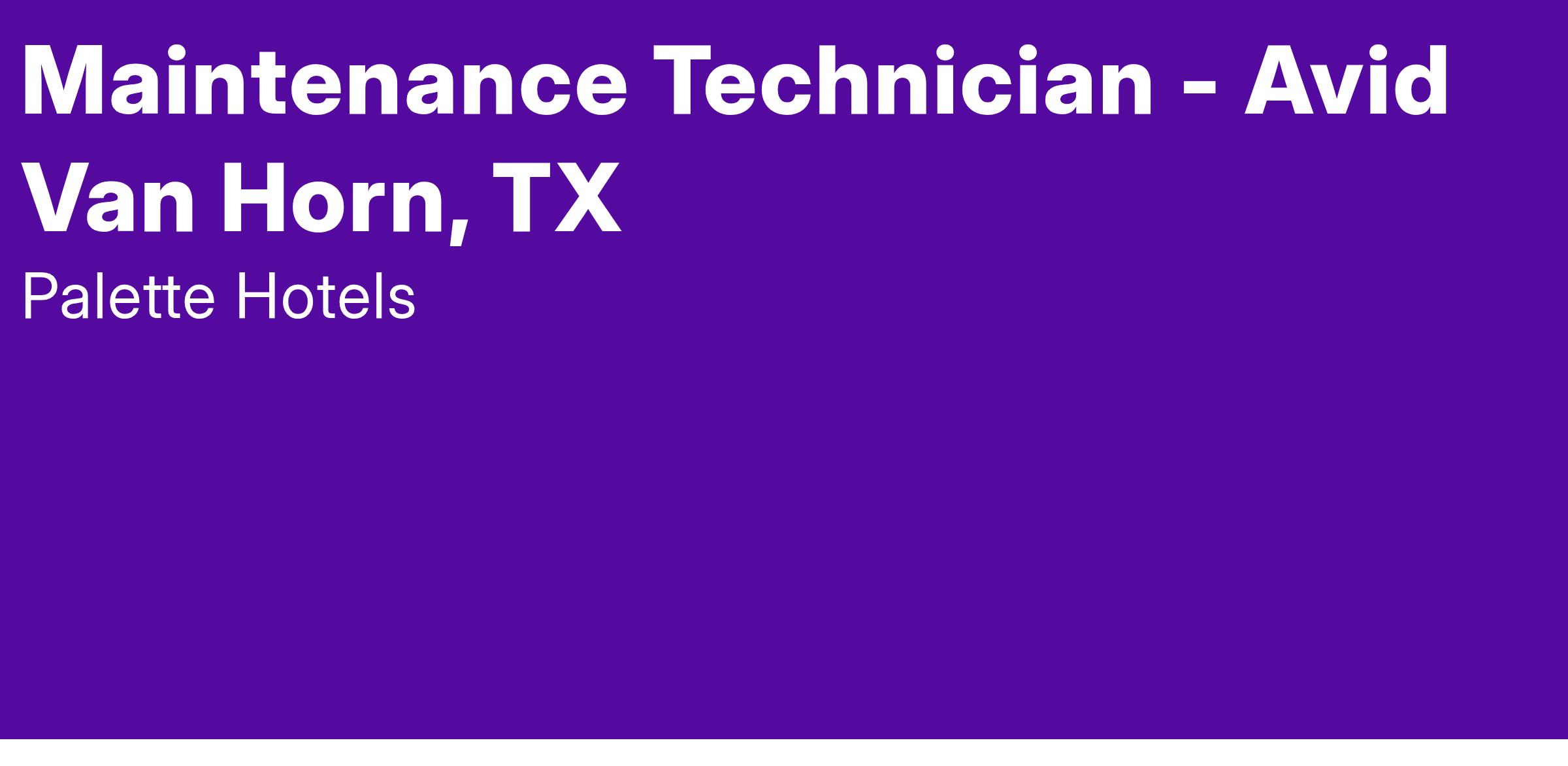 Palette Hotels, is an equal opportunity employer with policies prohibiting unlawful discrimination on the basis of any protected classification under applicable local, state and/or federal laws, which can include race, color, creed, sex, national origin, age, veteran status or physical or mental disability unrelated to job requirements.