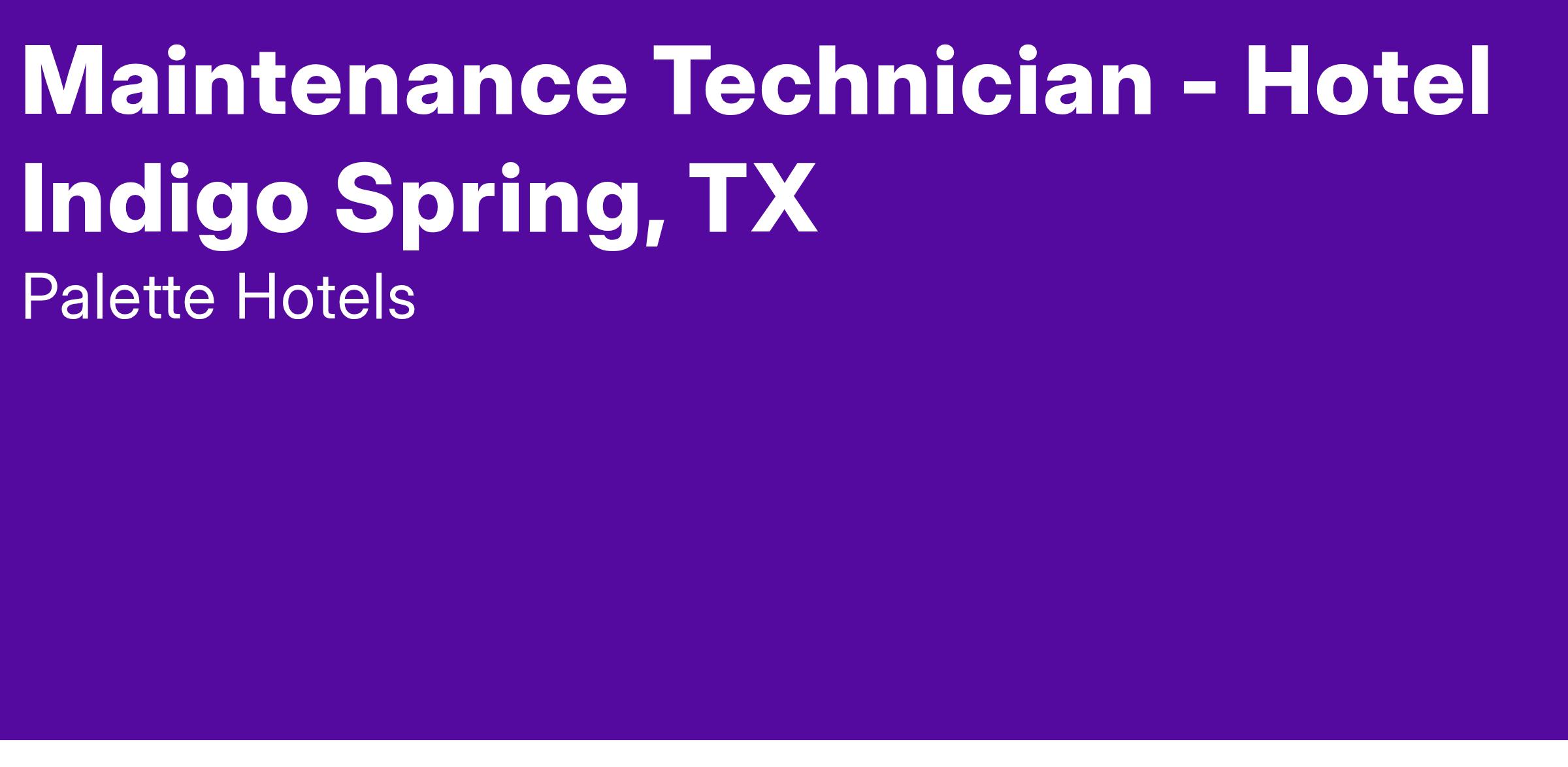 Position: Maintenance Technician - Hotel Indigo Spring, TX