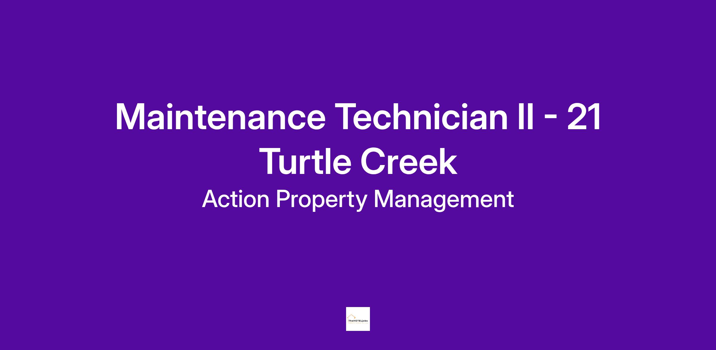 Action seeks a Maintenance Technician II to join our team at our luxury high rise community, 21 Turtle Creek, located in Dallas, Texas.