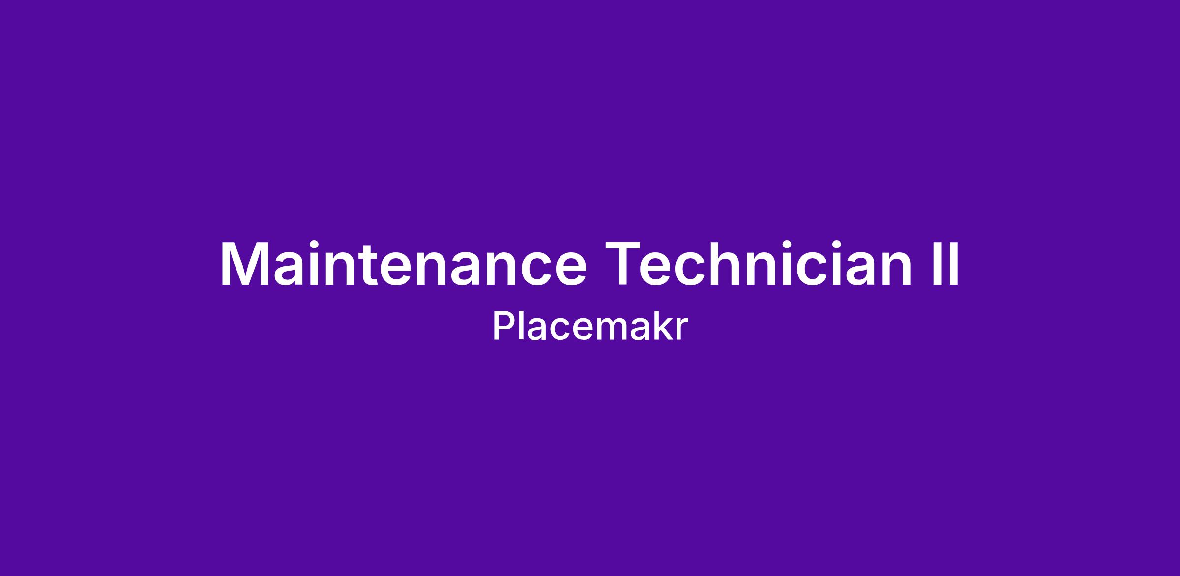 At Placemakr, we hold building safety and maintenance in the highest regard, particularly as it contributes to a top-tier experience for our guests and residents. As a Maintenance Technician II, you will be responsible for upholding our building standards by supporting all aspects of the overall maintenance and upkeep of your property by addressing building- and grounds-related concerns promptly. We are seeking skilled individuals who are on a mission to positively impact the guest and resident experience by making certain that our building is properly functioning, safe, and clean. As an integral member of our on-site Property Team, you will embody our Property Team Mission with each work order, preventative maintenance project and interaction, consistently demonstrate that effective resolution of maintenance issues is the core of our operation and share maintenance operation best practices with your team members.