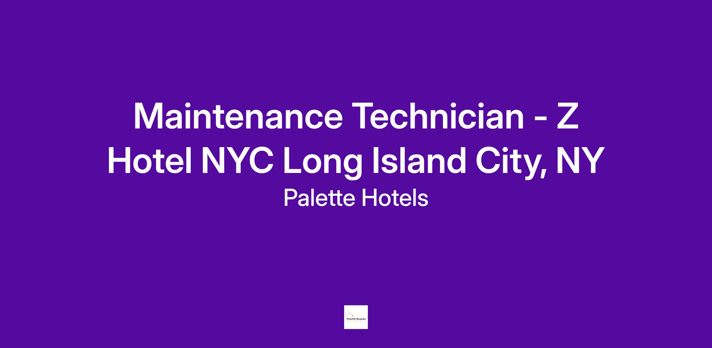 Position: Maintenance Technician - Z Hotel NYC Long Island City, NY
