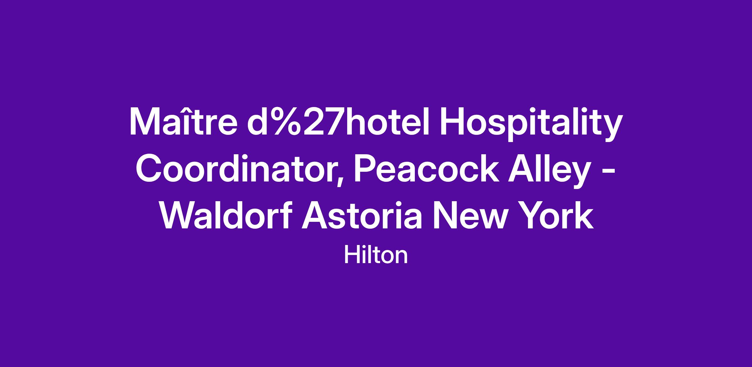 After undergoing a transformative restoration, Waldorf Astoria New York is set to reignite its magnetic allure. Waldorf Astoria New York is seeking a Maître d'hotel Hospitality Coordinator - Peacock Alley to unveil a new era of luxury which embodies the spirit of New York City.