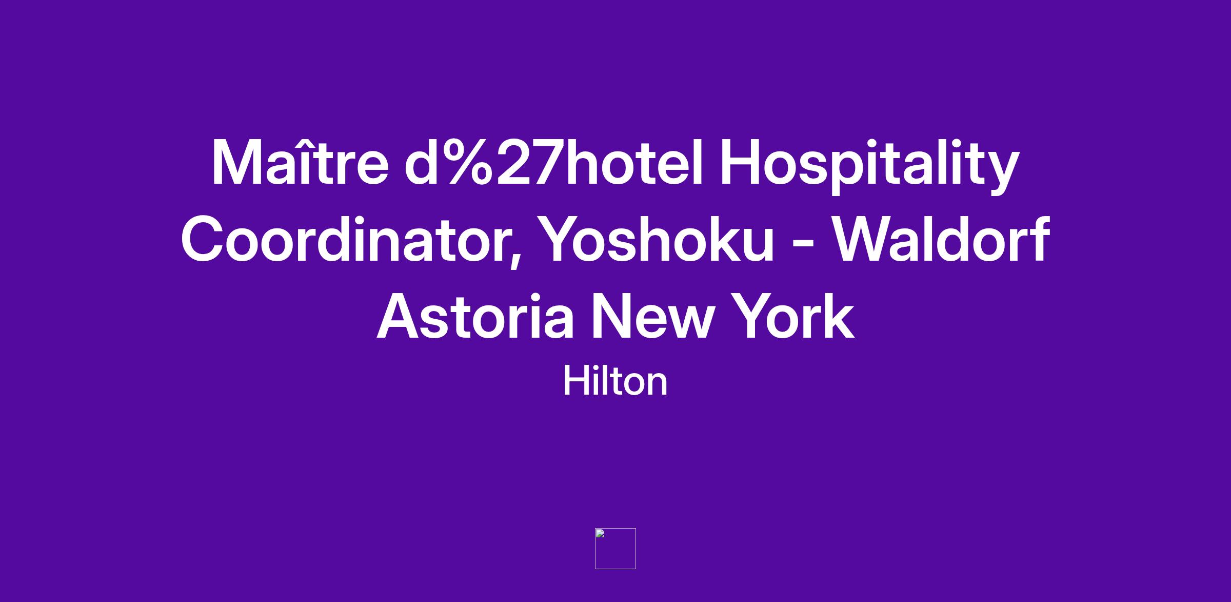 After undergoing a transformative restoration, Waldorf Astoria New York is set to reignite its magnetic allure. Waldorf Astoria New York is seeking a Maître d' Hospitality Coordinator- Yoshoku to unveil a new era of luxury which embodies the spirit of New York City.