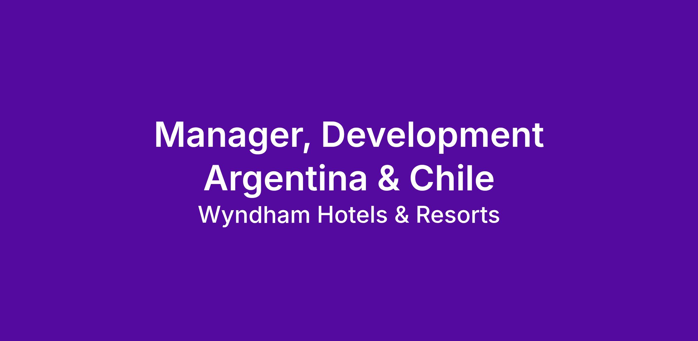 Wyndham Hotels & Resorts is now seeking a Manager, Development Argentina & Chile to join our team at WHR Argentina in Buenos Aires, Argentina.