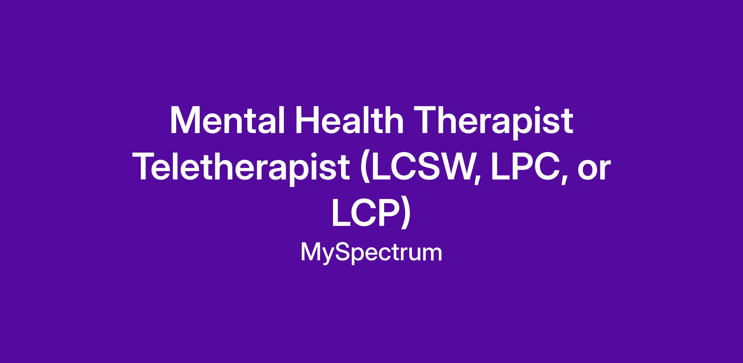Mental Health Therapist Teletherapist (LCSW, LPC, or LCP)