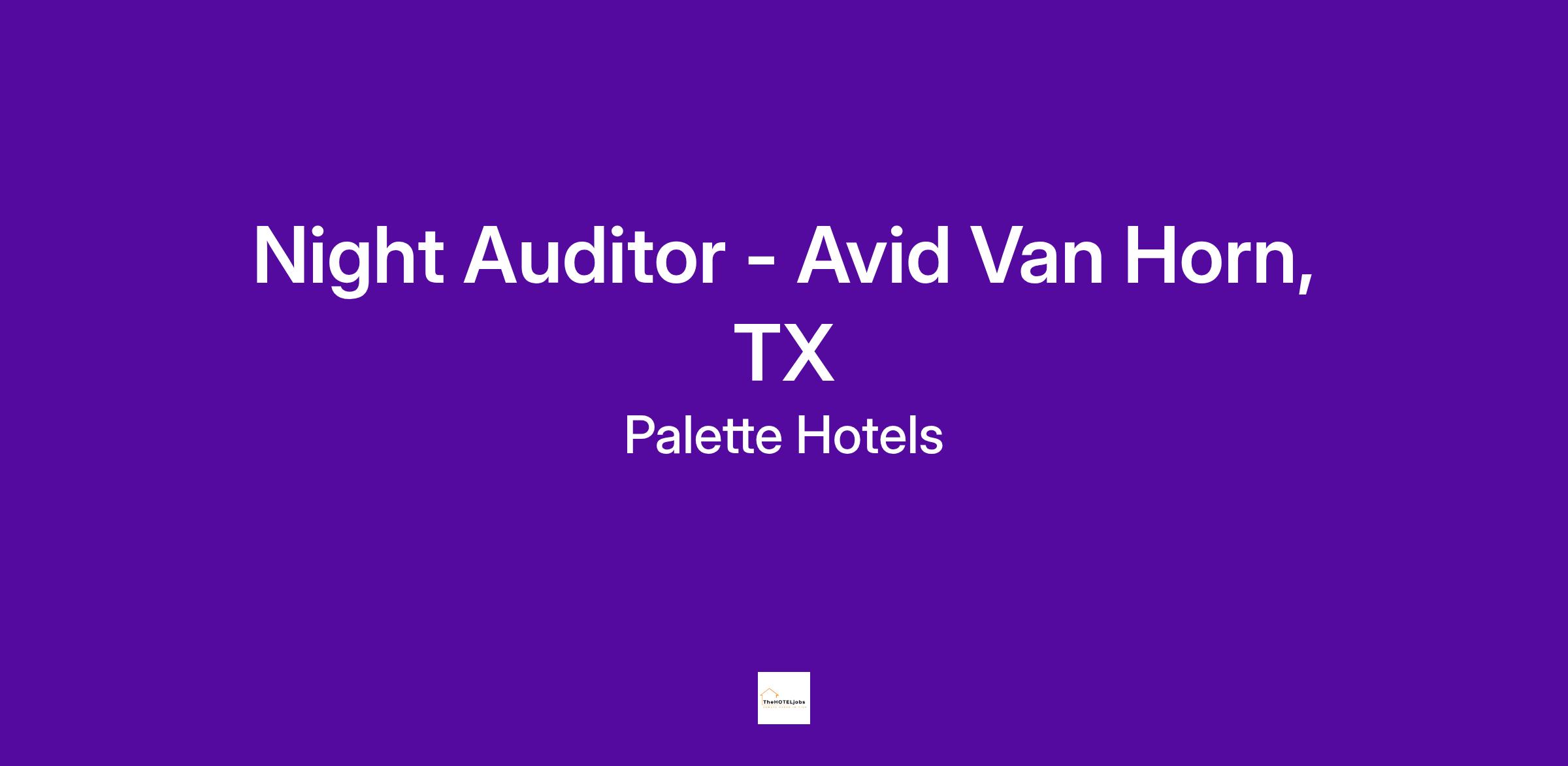 Position: Night Auditor - Avid Van Horn, TX