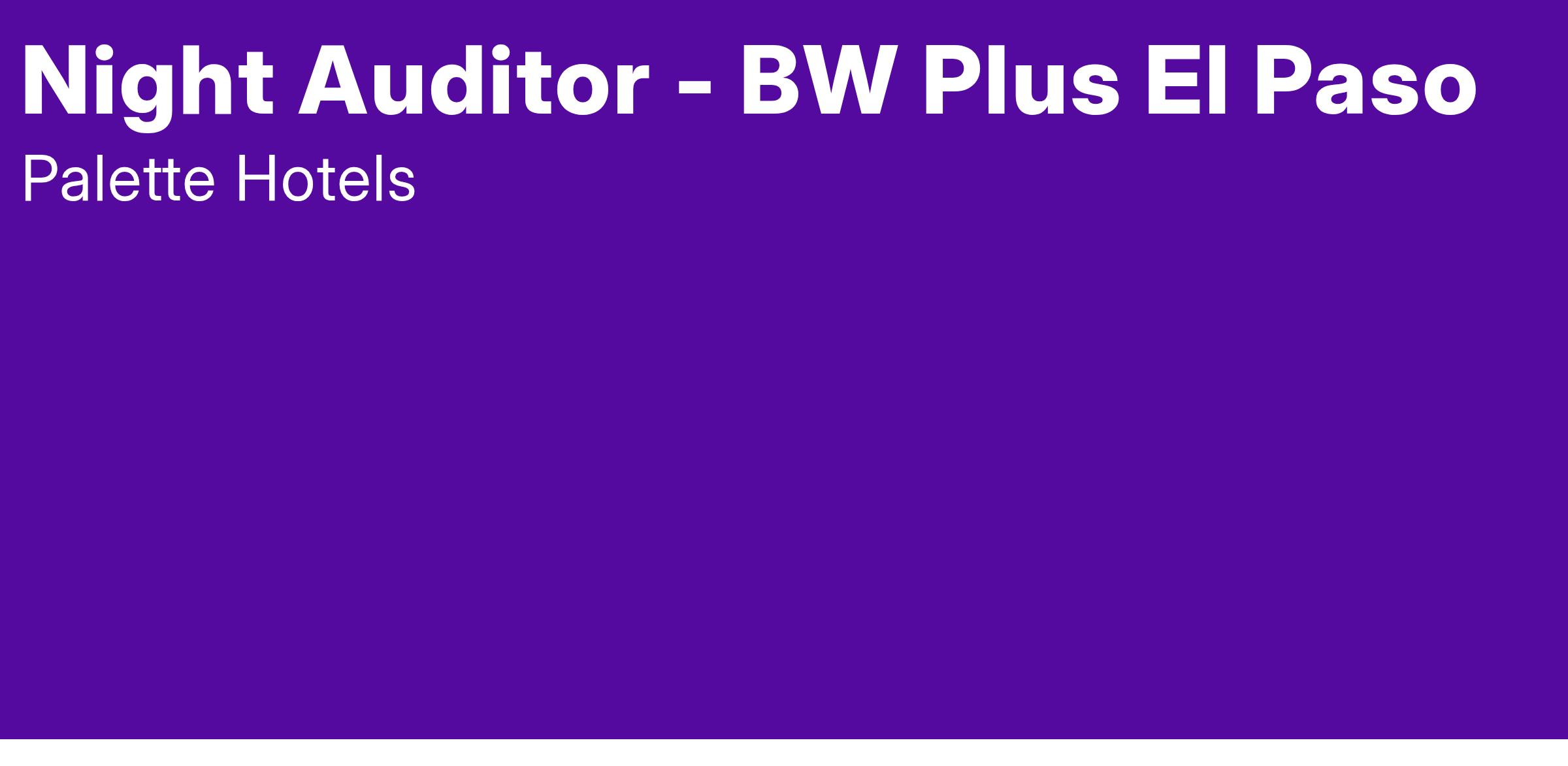 Palette Hotels, is an equal opportunity employer with policies prohibiting unlawful discrimination on the basis of any protected classification under applicable local, state and/or federal laws, which can include race, color, creed, sex, national origin, age, veteran status or physical or mental disability unrelated to job requirements.