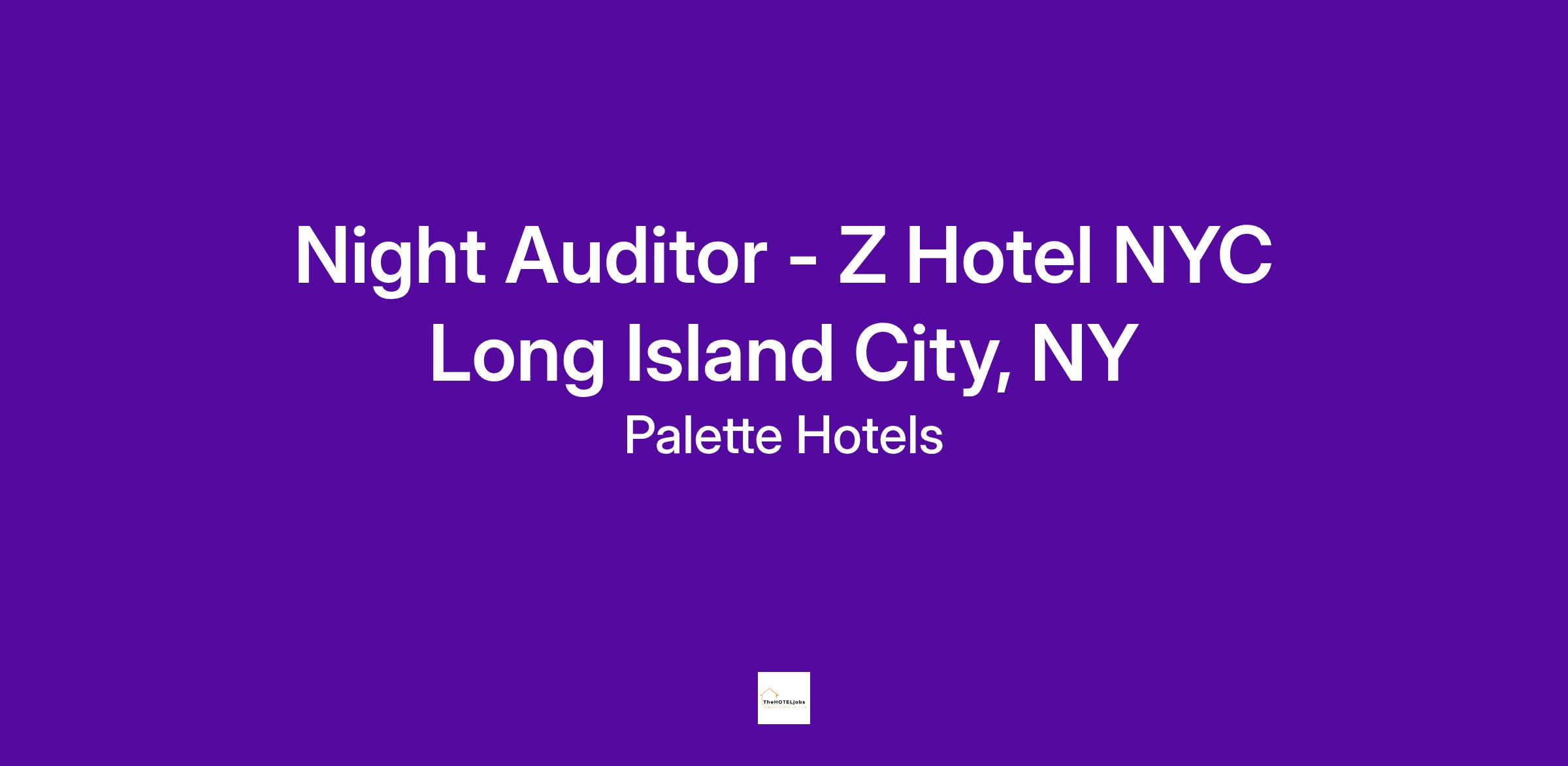 Position: Night Auditor - Z Hotel NYC Long Island City, NY