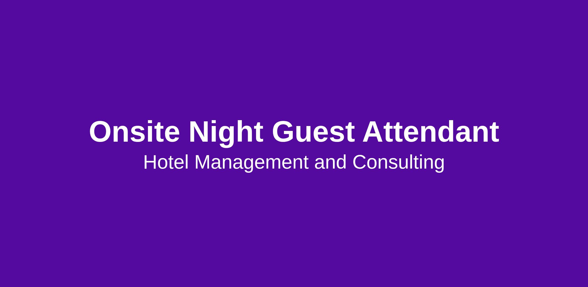 About the Role: Hotel Management & Consulting is seeking a positive, professional, and problem-solving Onsite Night Guest Attendant. In this highly visible customer service role, you will be the face of our property and the first point of contact for our guests. This position will live onsite and will typically work evening shifts and be on call overnight to oversee the property after hours, performing a wide variety of tasks.