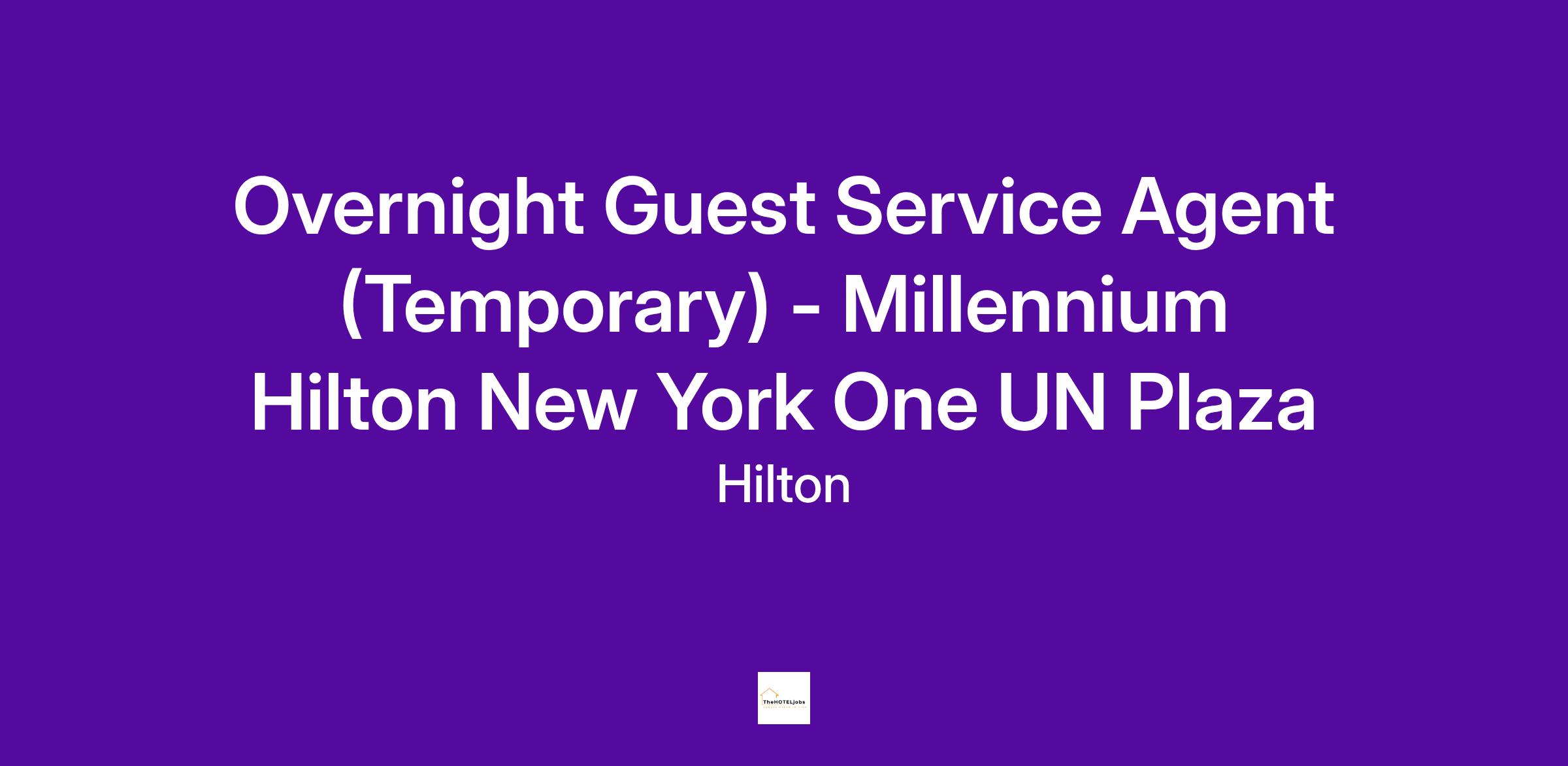 The Millennium Hilton New York One UN Plaza is looking for a temporary overnight Guest Service Agent to join our front office team!