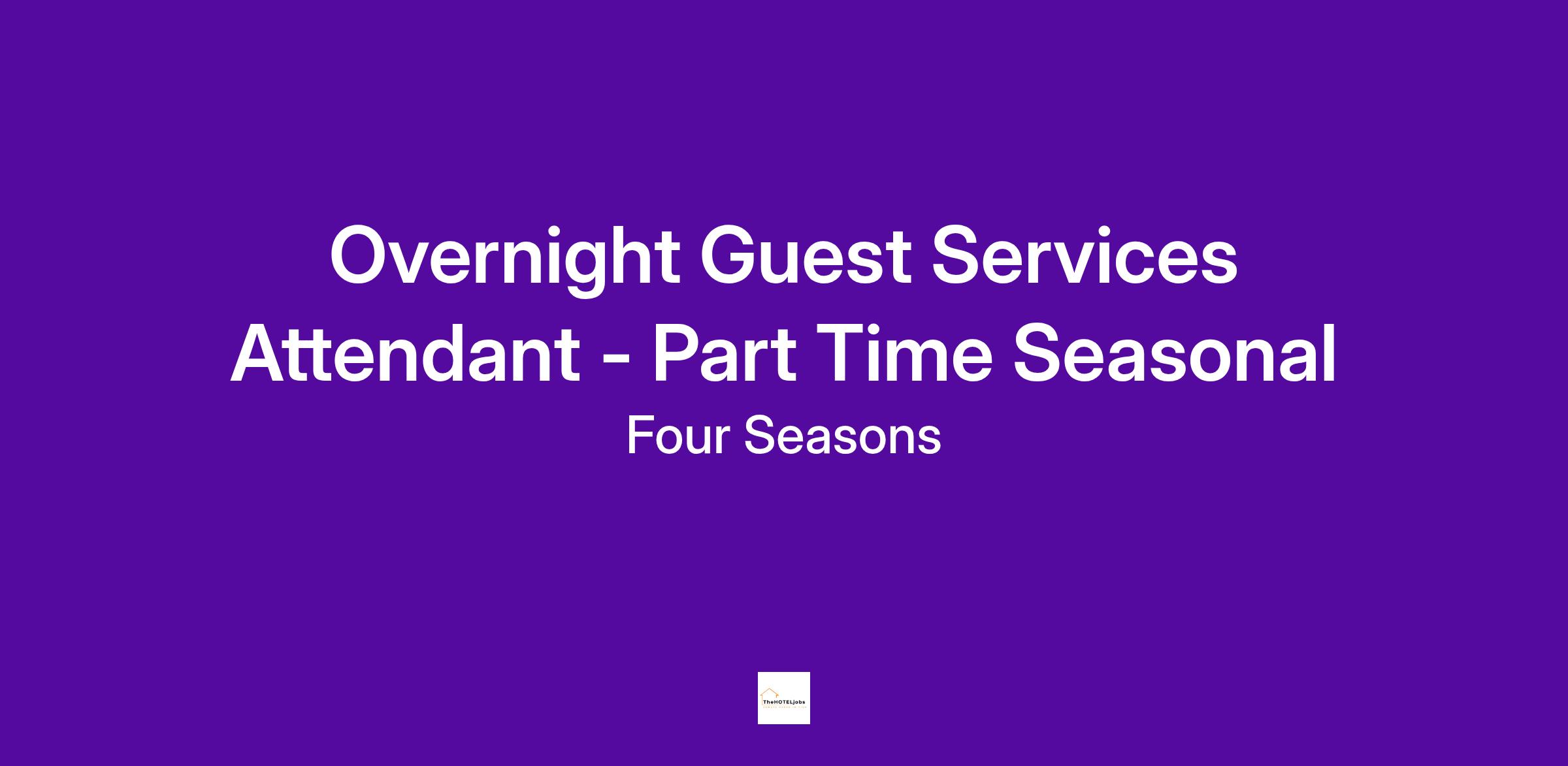 Join our dynamic, diverse team at Four Seasons Resort & Residences Whistler as the Part Time, Seasonal Overnight Guest Services Attendant.