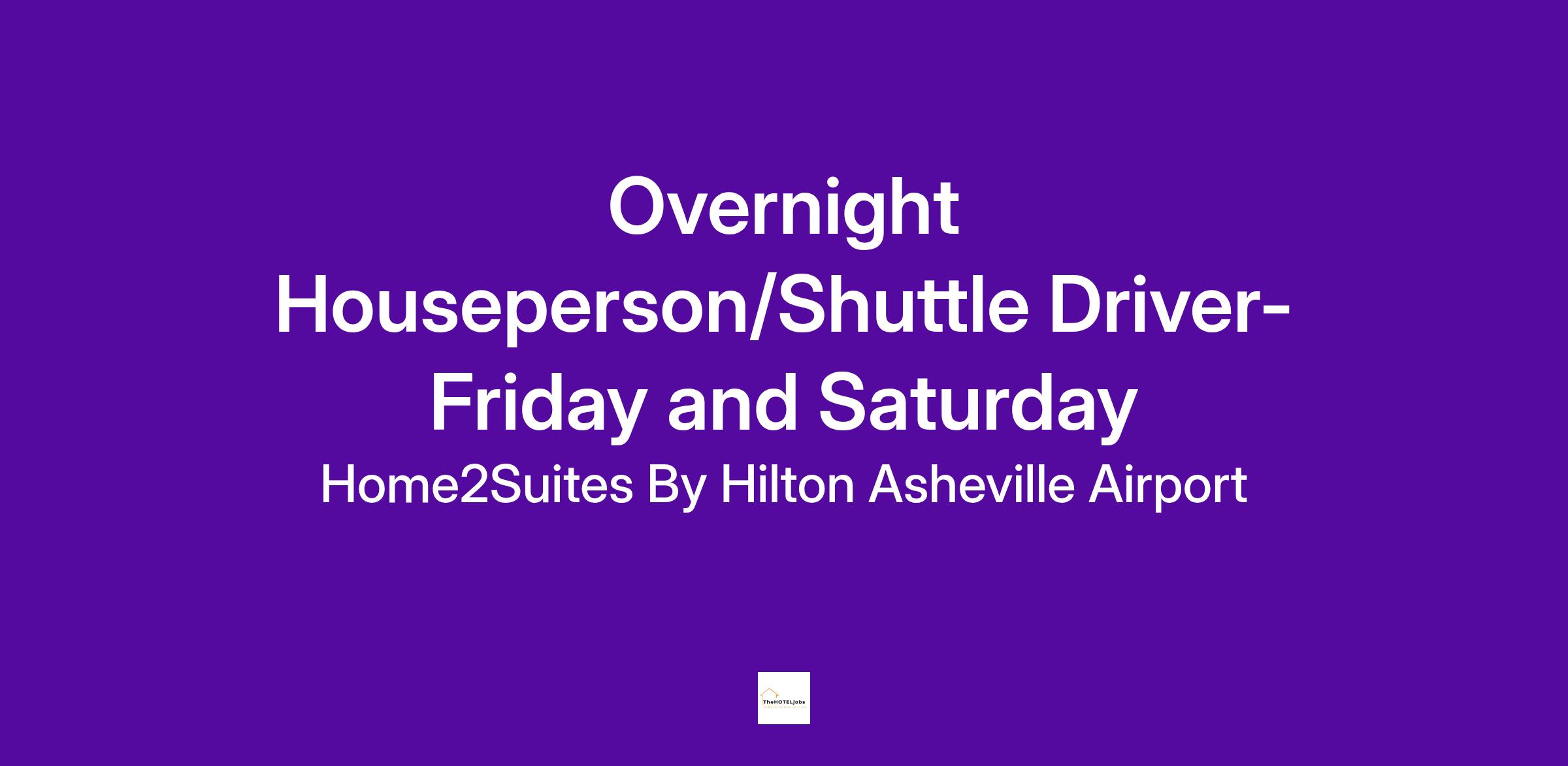 We are seeking a fun, detail oriented, dedicated individual to join our team as a House person and Shuttle Driver at our Home2 Asheville Airport hotel; overnight and weekend availability preferred. You will play a critical role in maintaining the highest standards of cleanliness and presentation in our common areas and corridors, creating exceptional guest experiences while enjoying a competitive salary in a fun, team-oriented environment. You are also responsible for ensuring the seamless and safe transportation of our guests while upholding the highest service standards. Your dedication to providing exceptional guest experiences through reliable and comfortable shuttle services will be key. If you take pride in ensuring a clean and inviting atmosphere for guests, we would love to hear from you!
