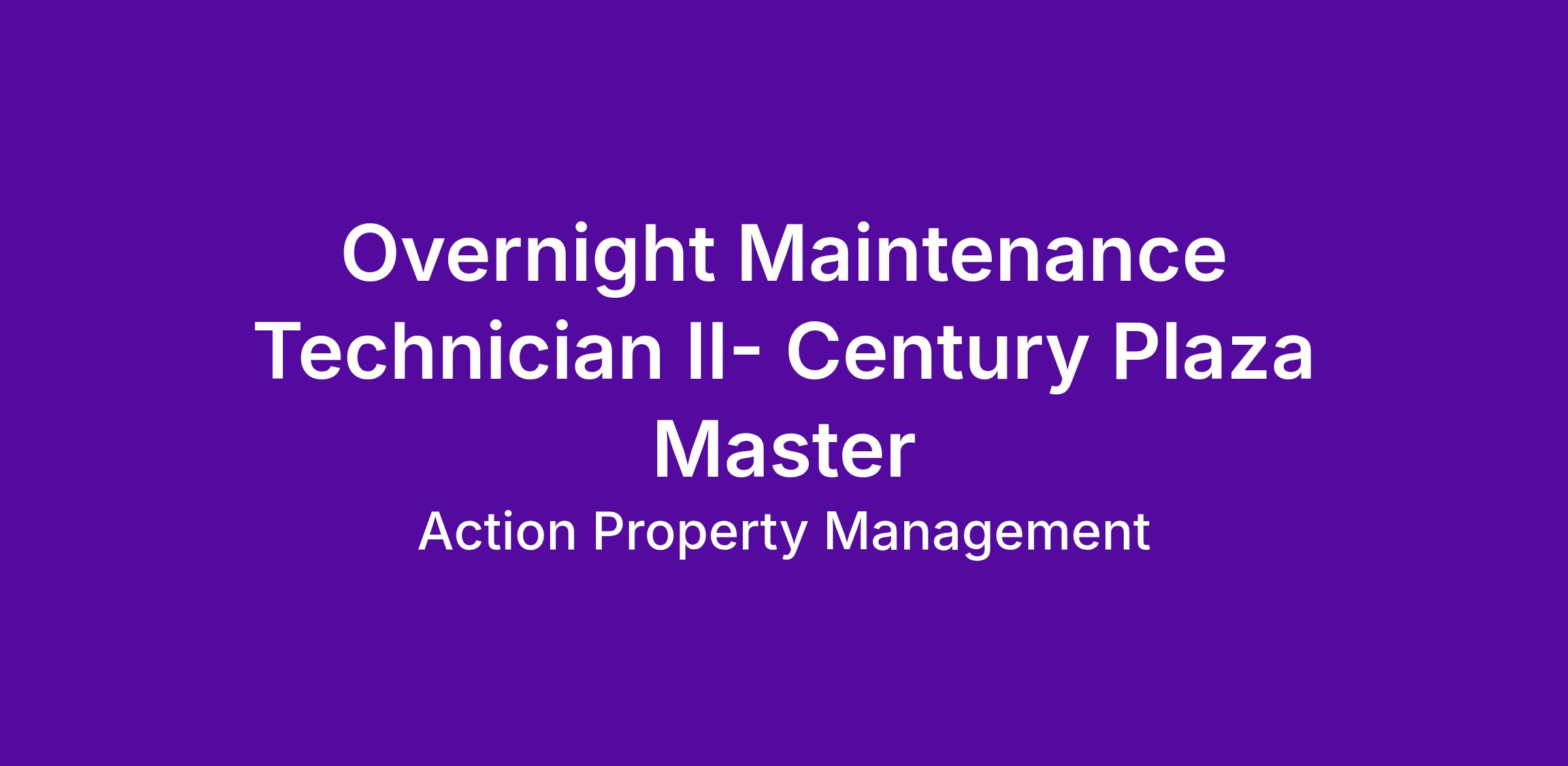 Action is seeking a full-time Maintenance Engineer to join our Century Plaza Master in Century City.