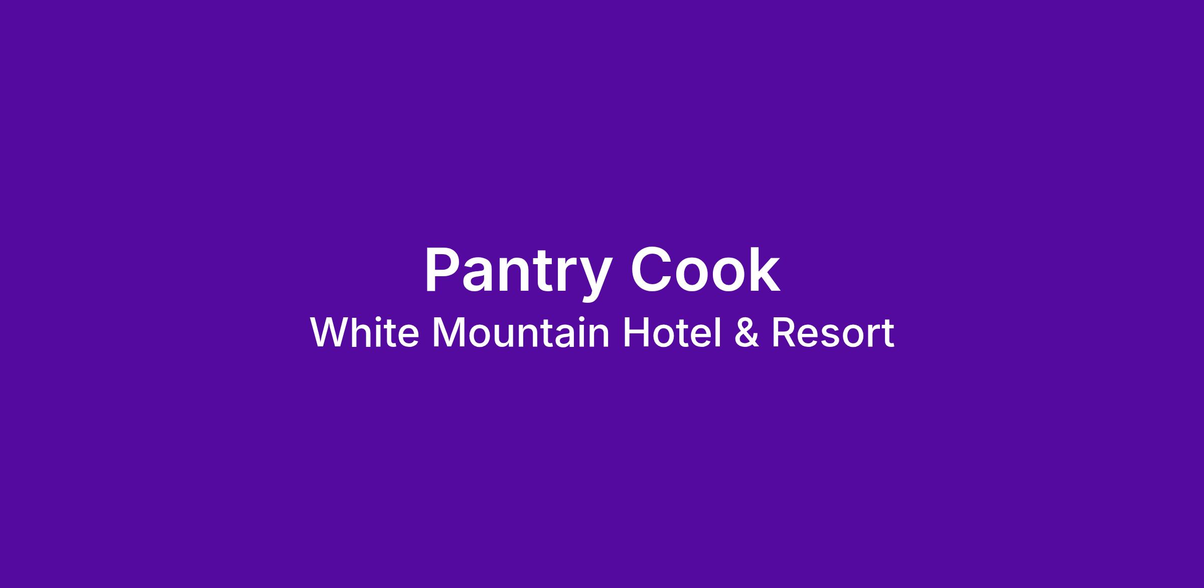 The White Mountain Hotel is looking for a full-time, year-round Pantry Cook to join our award-winning culinary team. Located just minutes away from the heart of North Conway, Ledge's Restaurant offers a fantastic opportunity to be part of a dynamic culinary team in a thriving and beautiful destination.