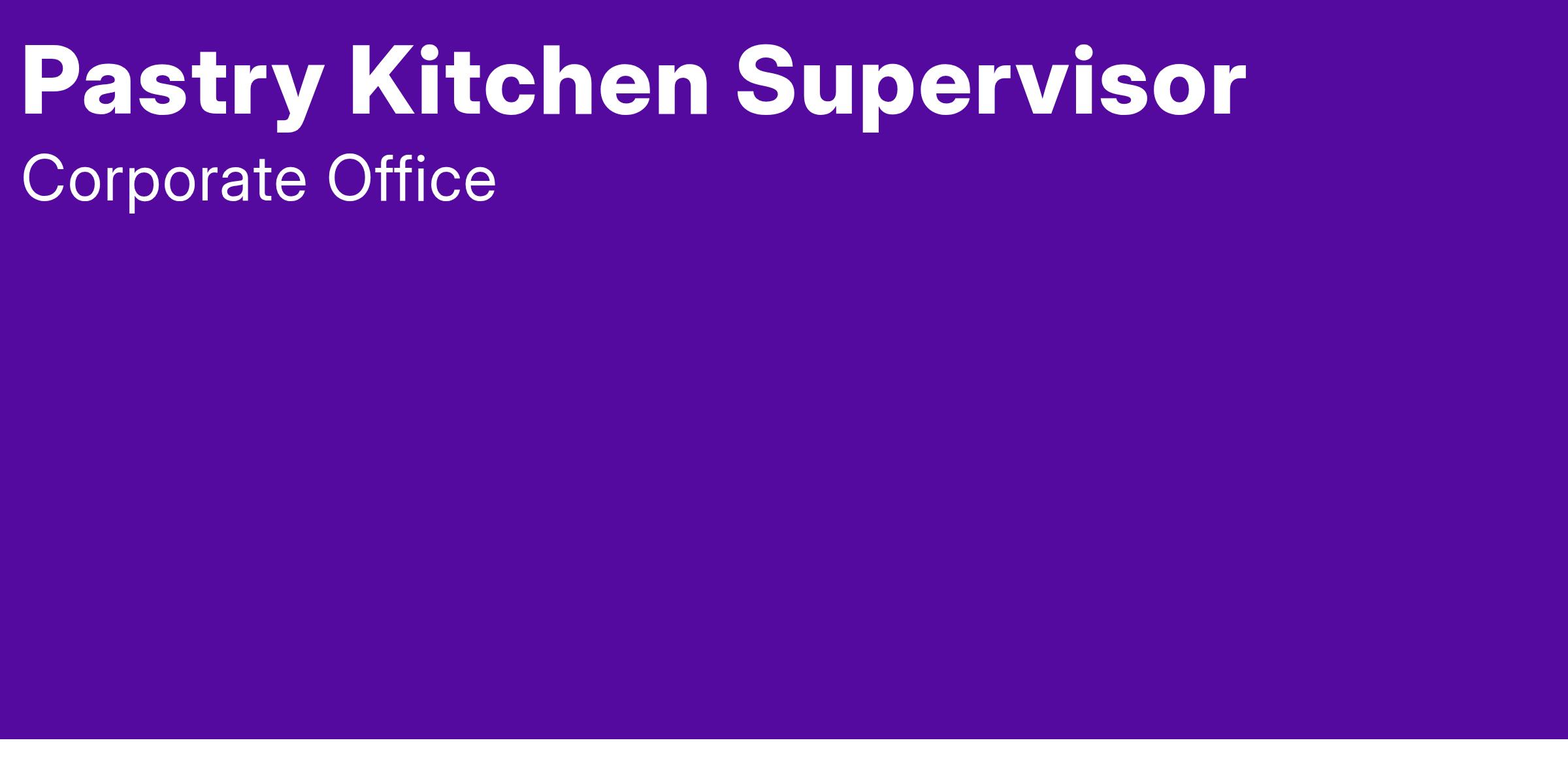 The Kitchen Supervisor will assist in the overall operation of the Pastry team . Partnering with F&B management, this individual is responsible for creating schedules, executing orders, and ensuring a quality experience for hotel guests.