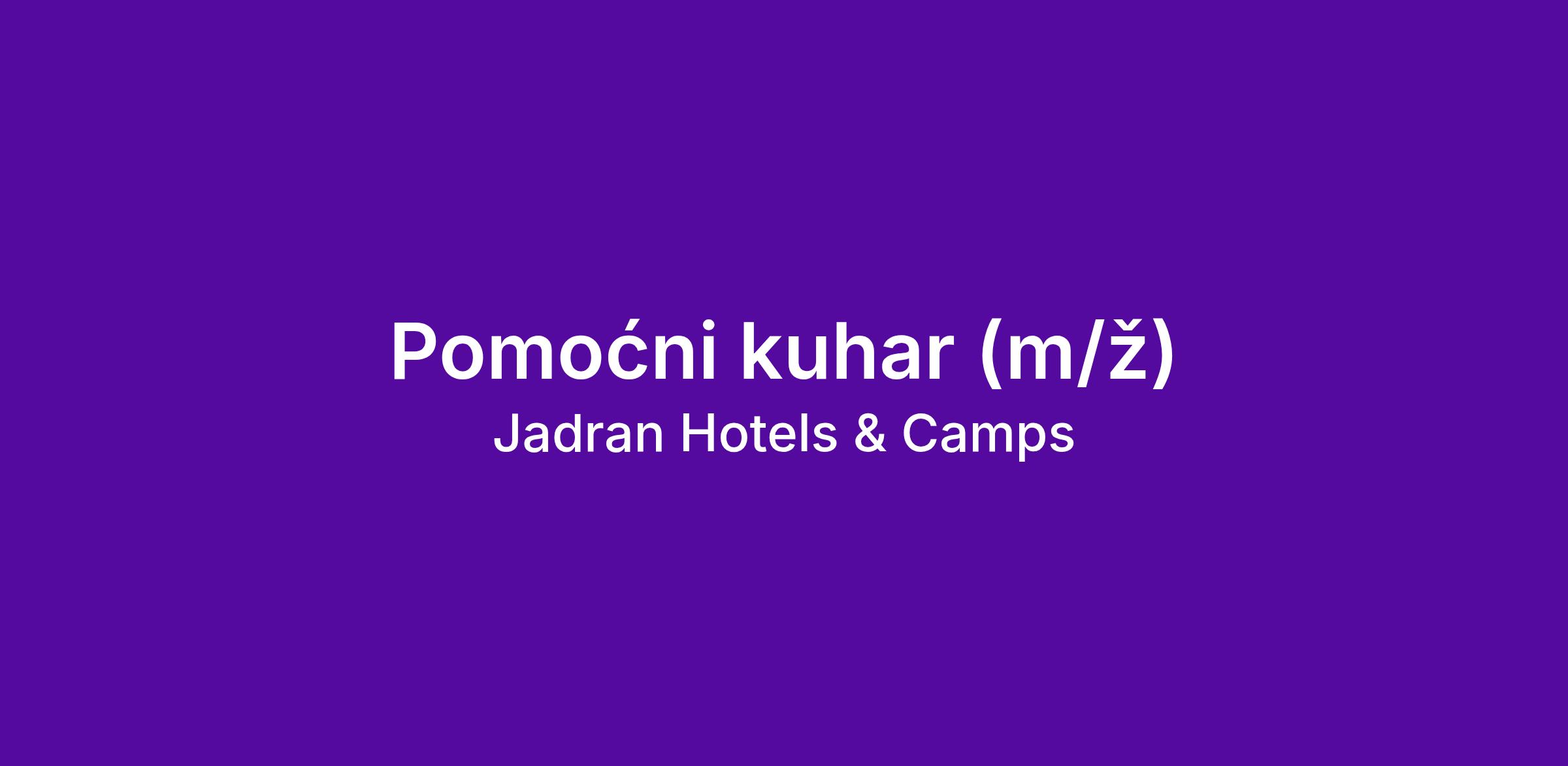 Pomoćni kuhar (m/ž)