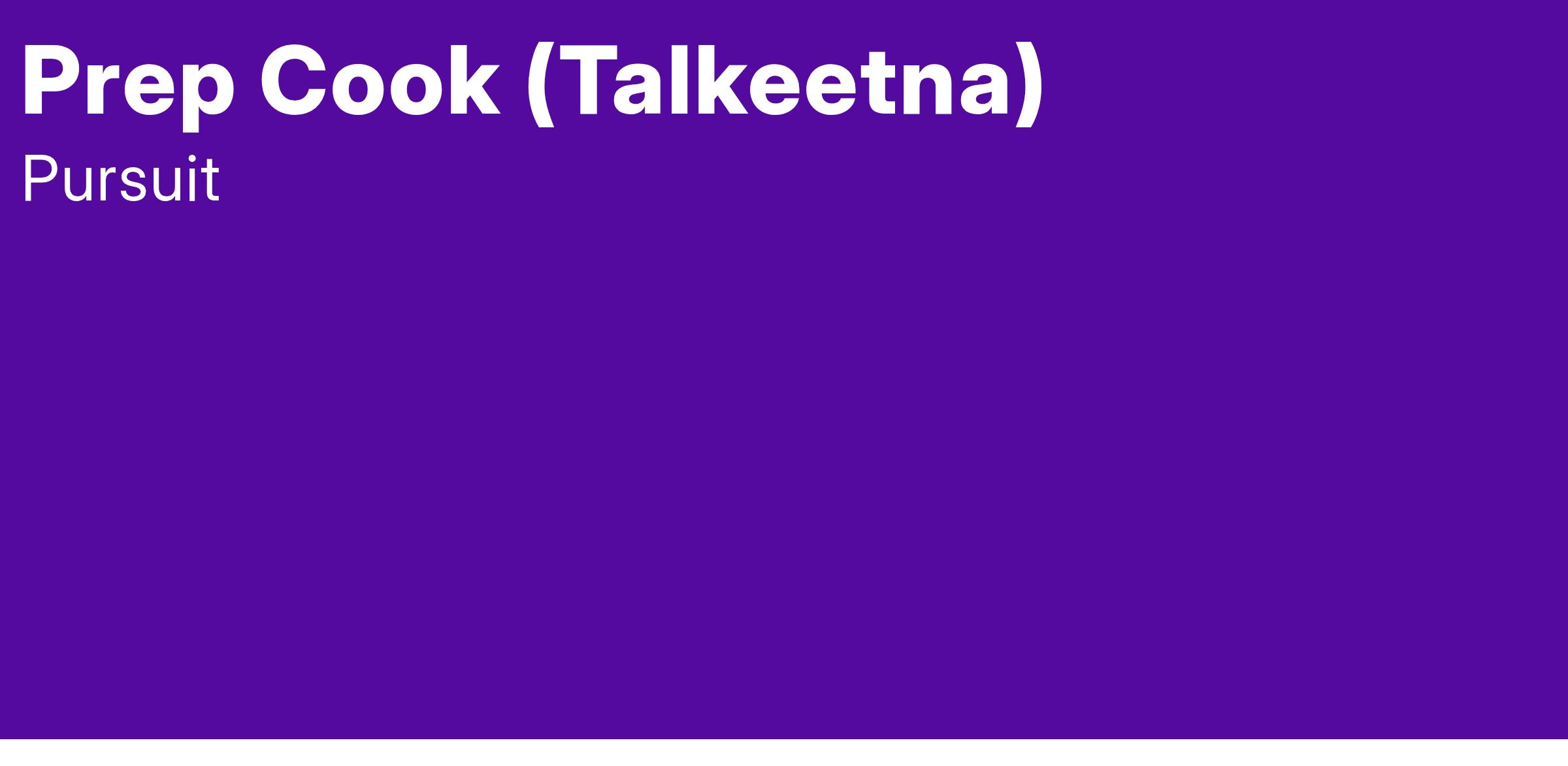 Safety, anticipating guest needs, honoring our surroundings and bringing your best every day are the core values we live by in order to provide dynamic guest service at the Talkeetna Alaskan Lodge. As the Prep Cook, you will prepare menu items for dining room service while working efficiently with standardized recipes and presentations. You will have a range of duties in order to assist team members including: