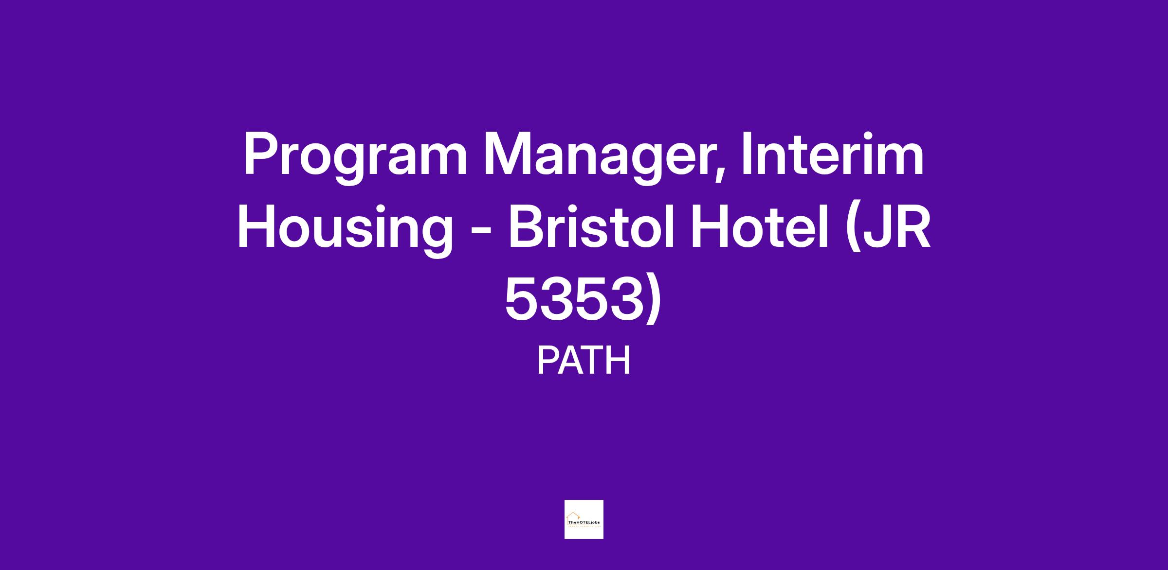 PATH is seeking candidates passionate about helping others make a positive change in their lives to join our Interim Housing Services team as the Program Manager, Interim Housing at the Bristol Hotel office.