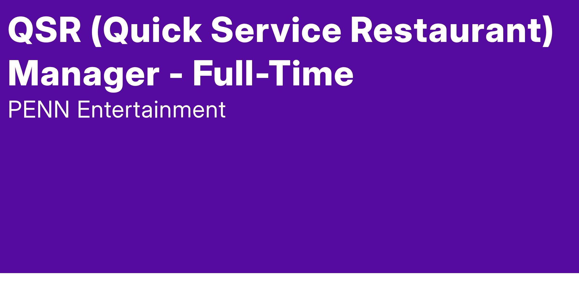 QSR (Quick Service Restaurant) Manager - Full-Time