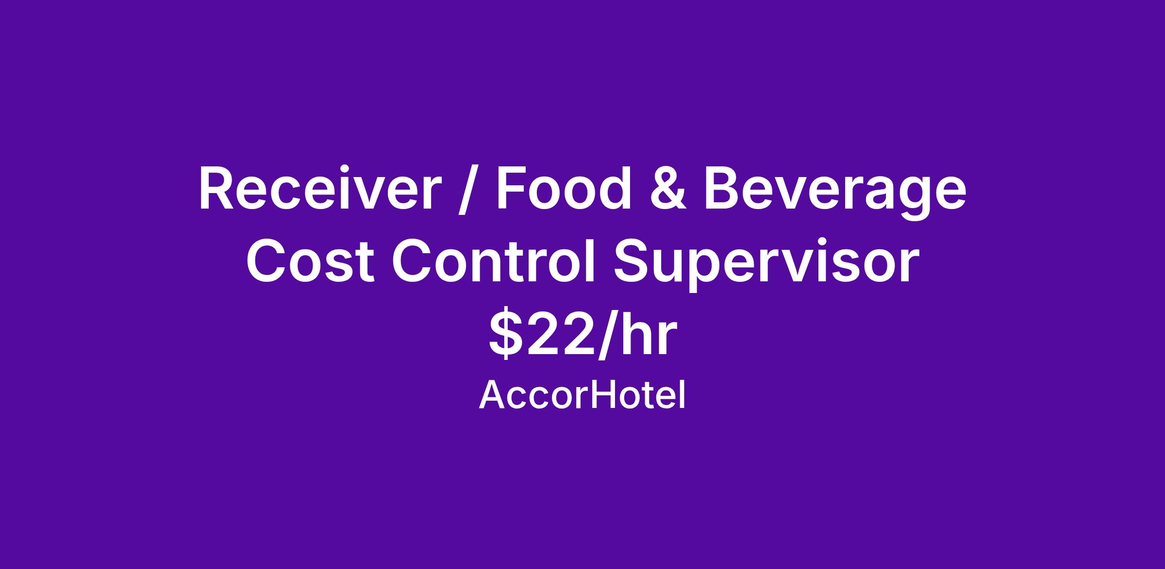 We are seeking a detail-oriented and analytical professional to join our team as Receiver / Food & Beverage Cost Controller Supervisor.
