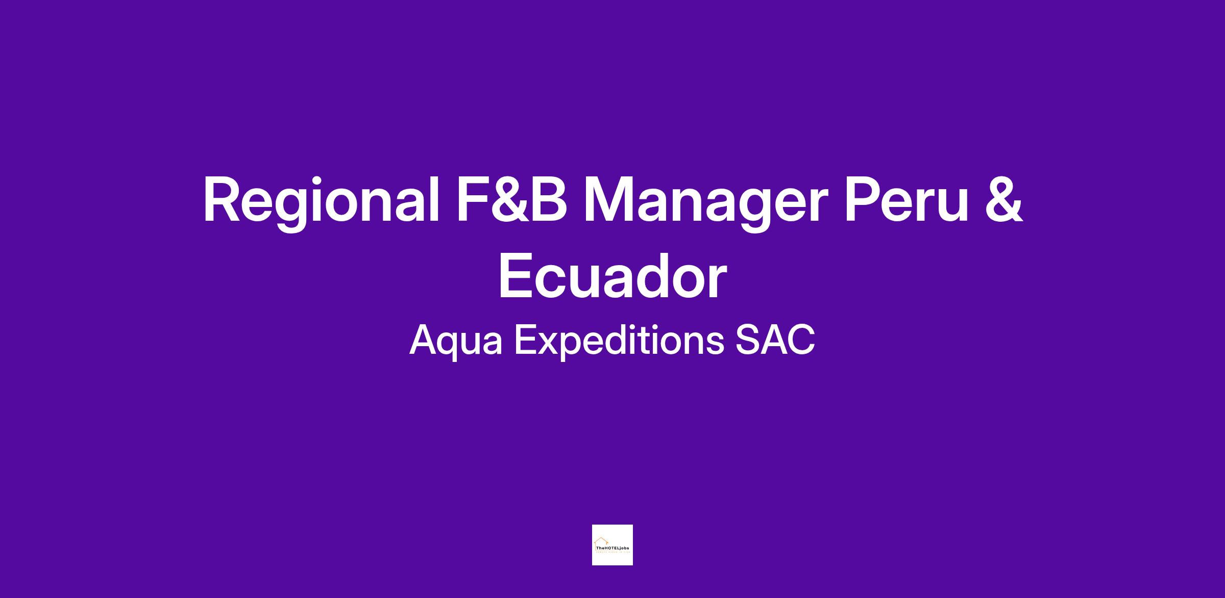 We´re looking for: Regional F&B Manager - Perú & Ecuador